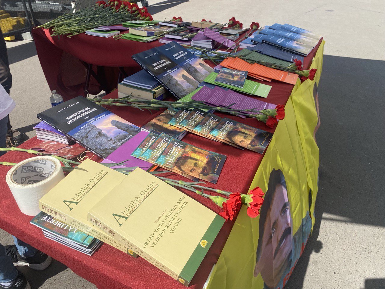 Önder APO’nun kitaplarının bulunduğu stantta, Önder APO’nun geliştirmiş olduğu Demokratik, Ekolojik ve Kadın Özgürlükçü paradigmaya dair Fransızca diline çevrilmiş broşürlerde yer aldı.