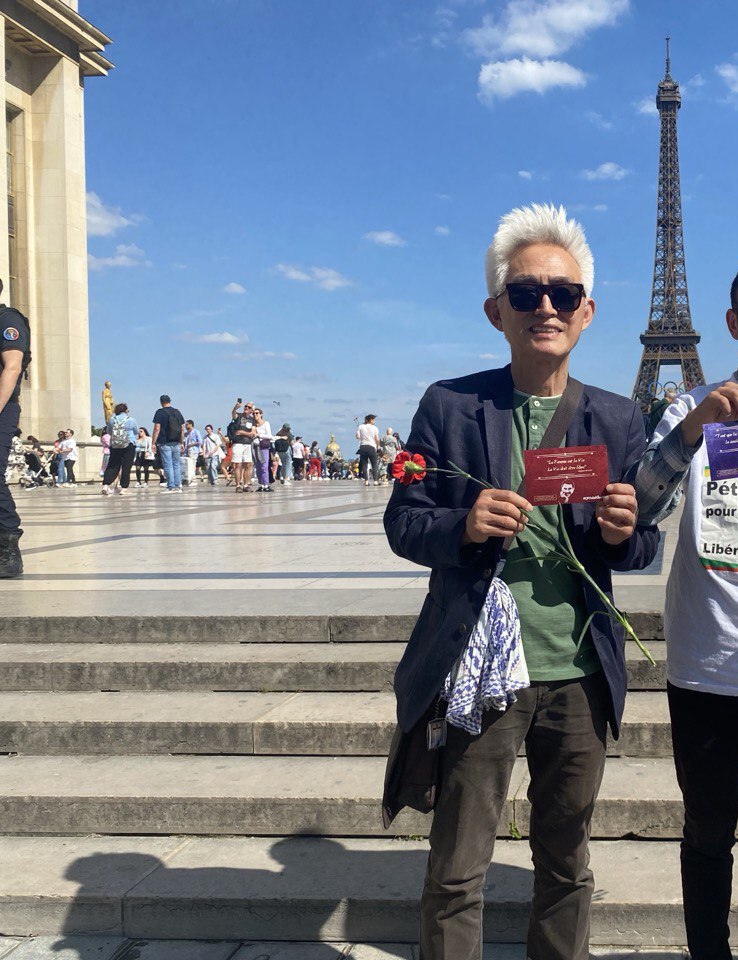 Paris Eyfel Kulesinde Önder APO üzerinde yürütülen tecritte ilişkin, TCŞ üyesi gençler tarafından stant açıldı.