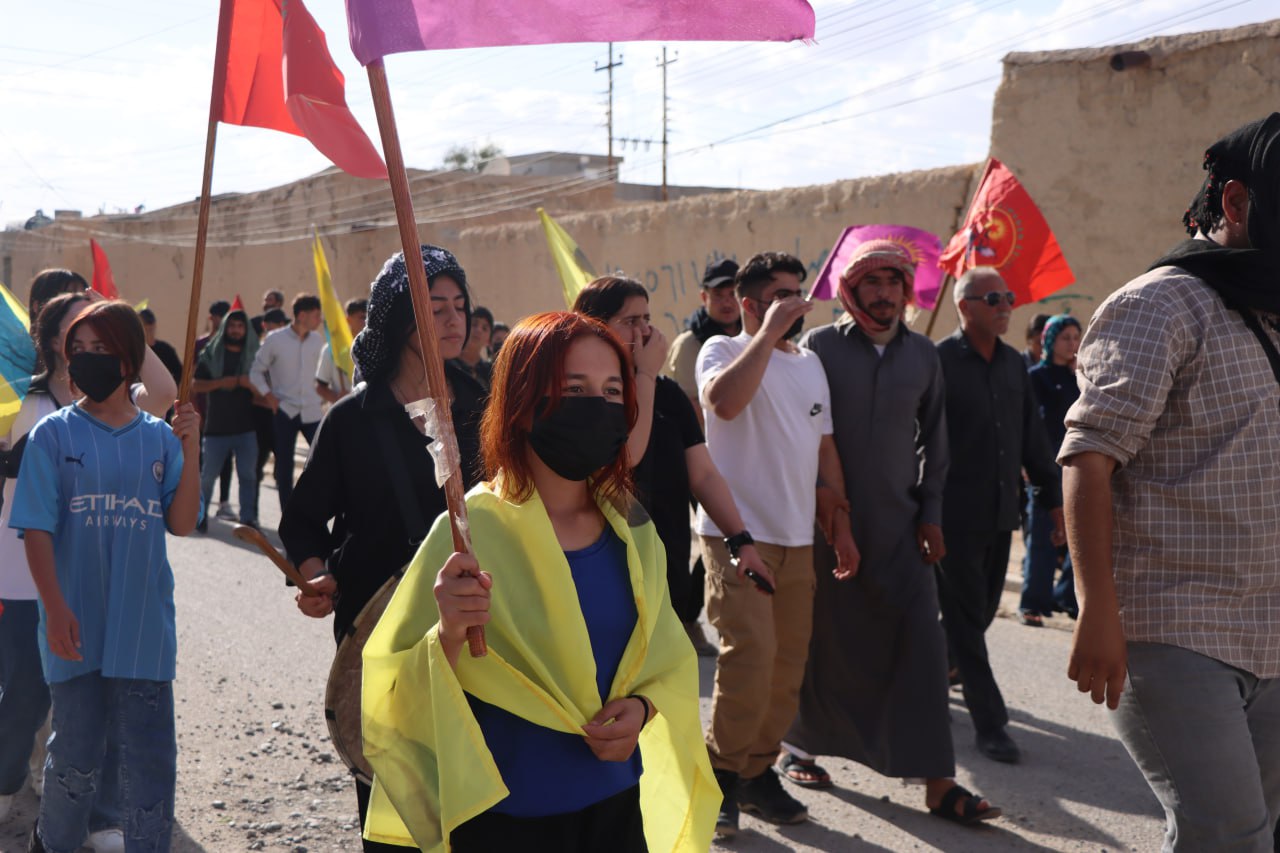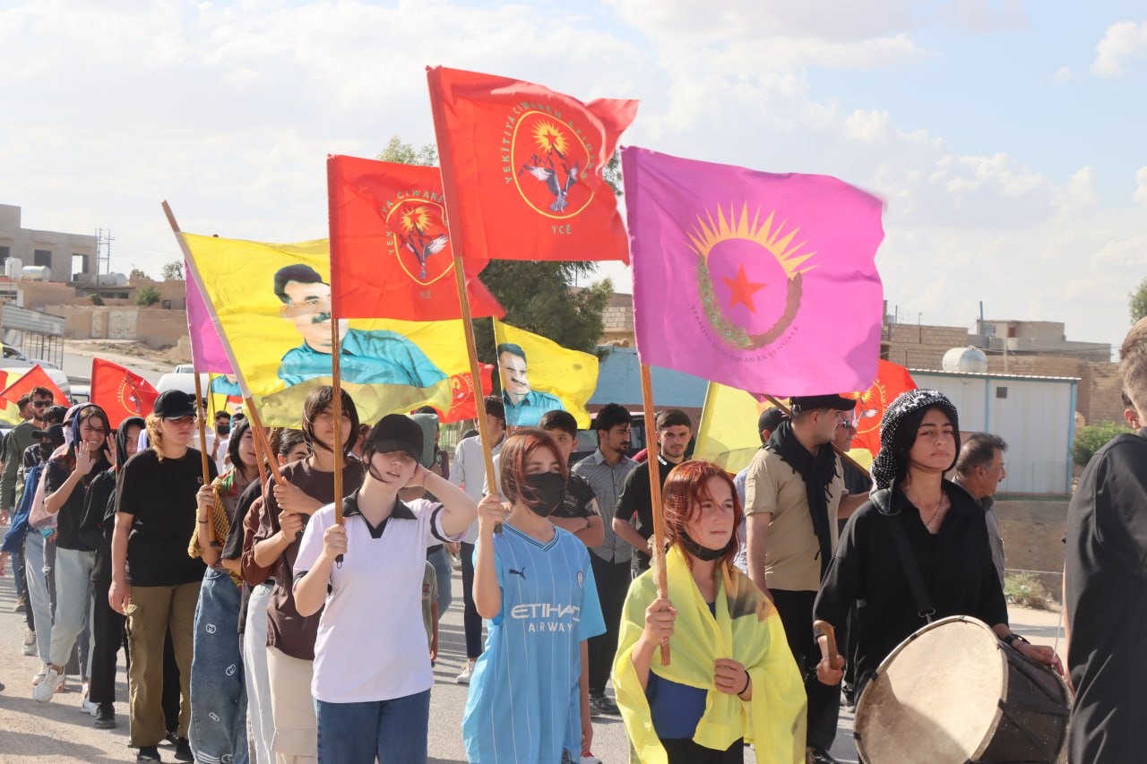Bugün saat 16.00’da Şengal’in Xanesor bölgesinde yüzlerce Ezidî ve Arap gencin katılımıyla büyük bir yürüyüş gerçekleştirildi. Yürüyüş, HTŞ’nin Suriye’de gerçekleştirdiği katliamları protesto etmek amacıyla düzenlendi.
