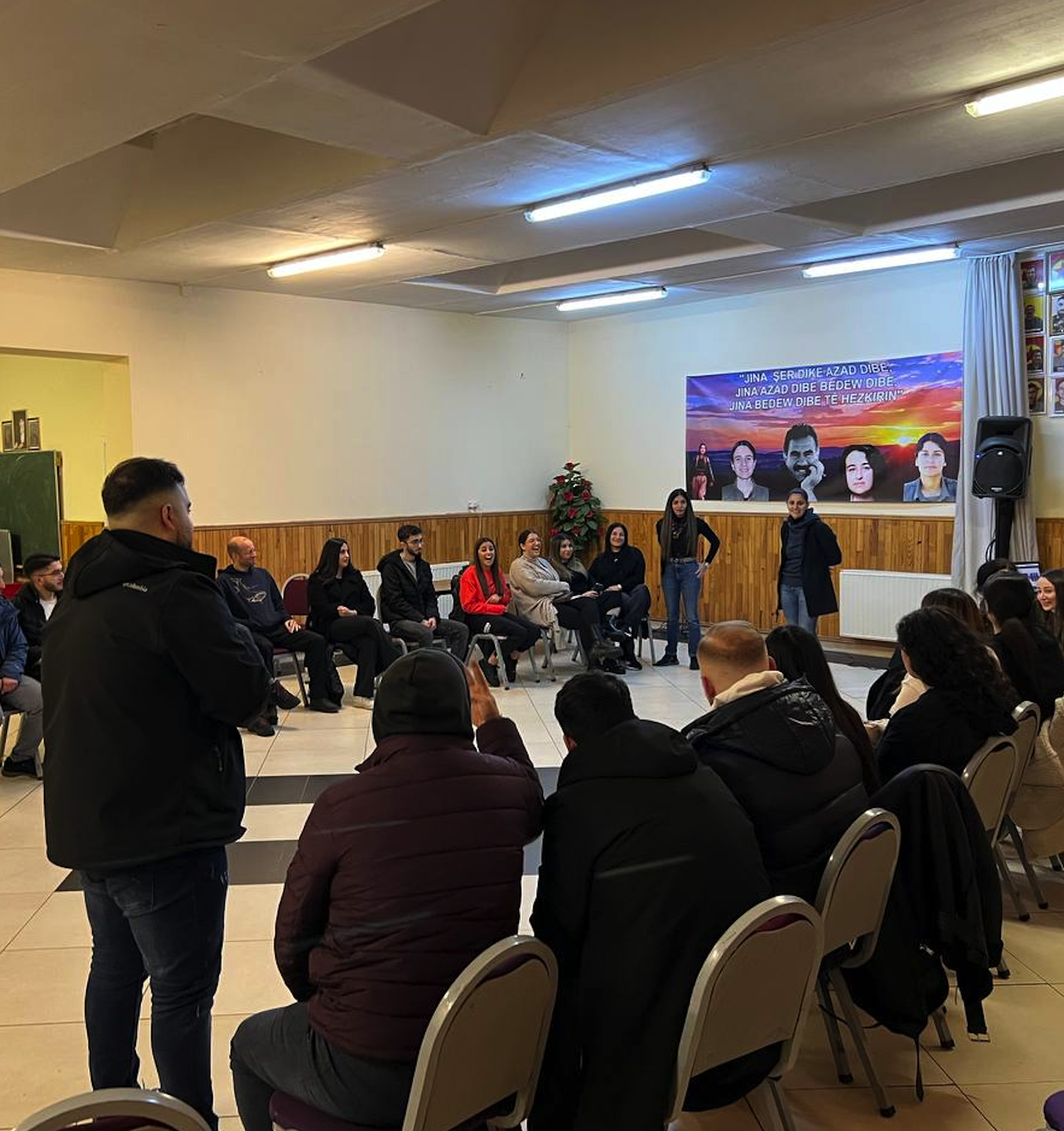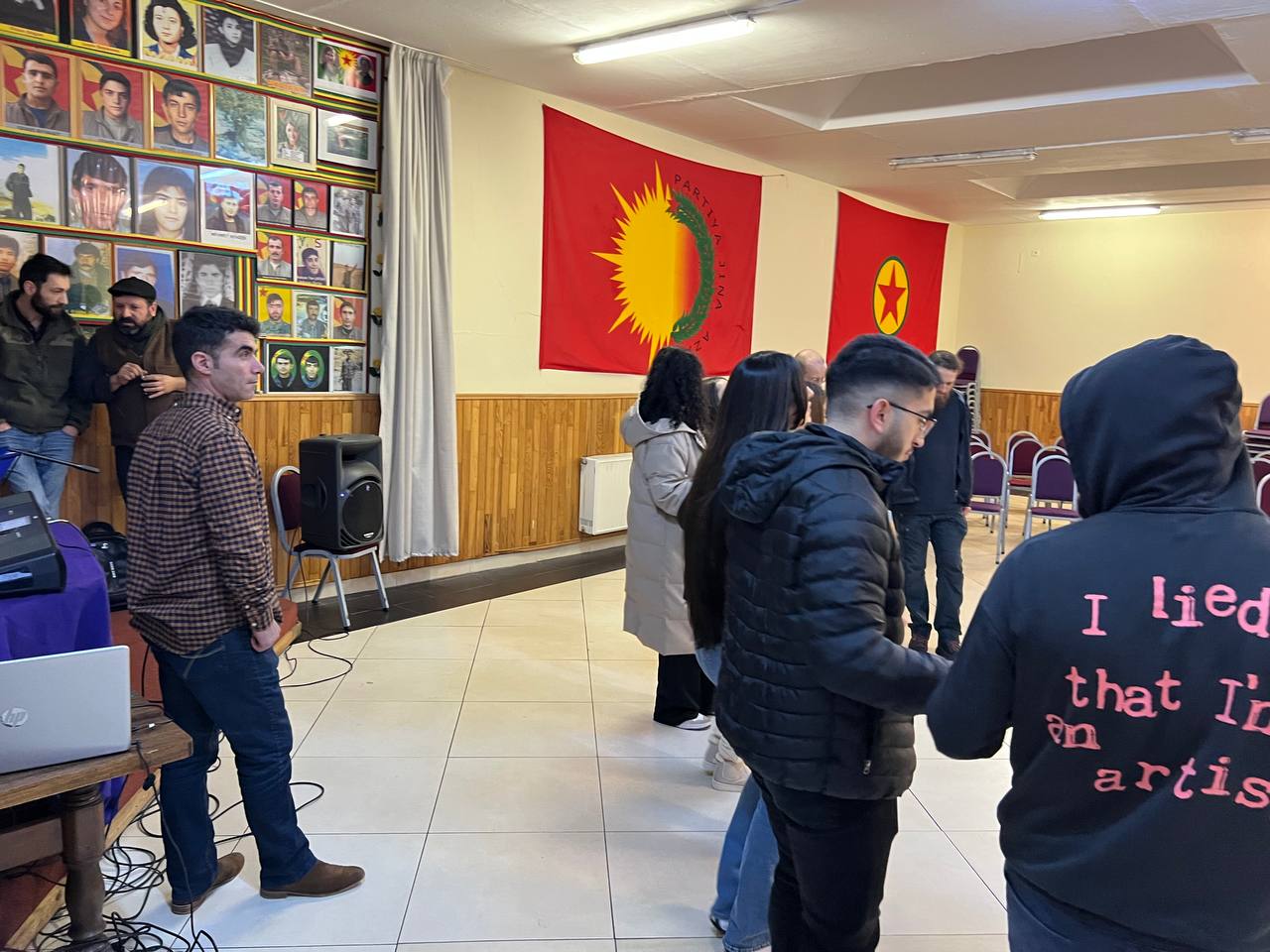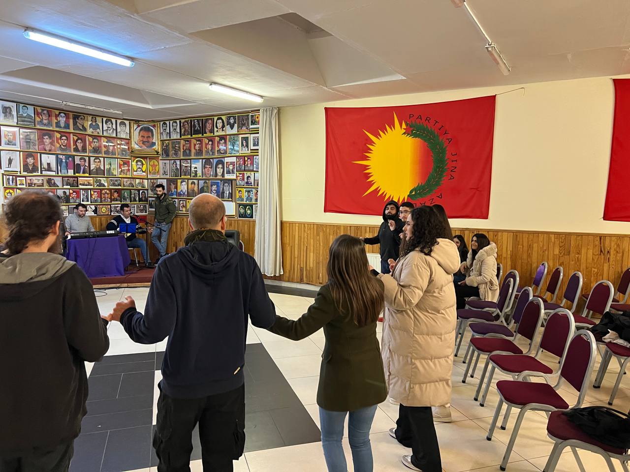 LIEGE – Gençler akşam saatlerinde Liege Demokratik Kürt Kültür Merkezi’nde bir araya geldi. Tevgera Ciwanên Şoreşger (TCŞ) ve Jinên Ciwan ên Têkoşer (TekoJIN) üyeleri öncülüğünde düzenlenen etkinlik, Kurdistan Devrim Şehit’leri anısına bir dakikalık saygı duruşunun ardından başladı.