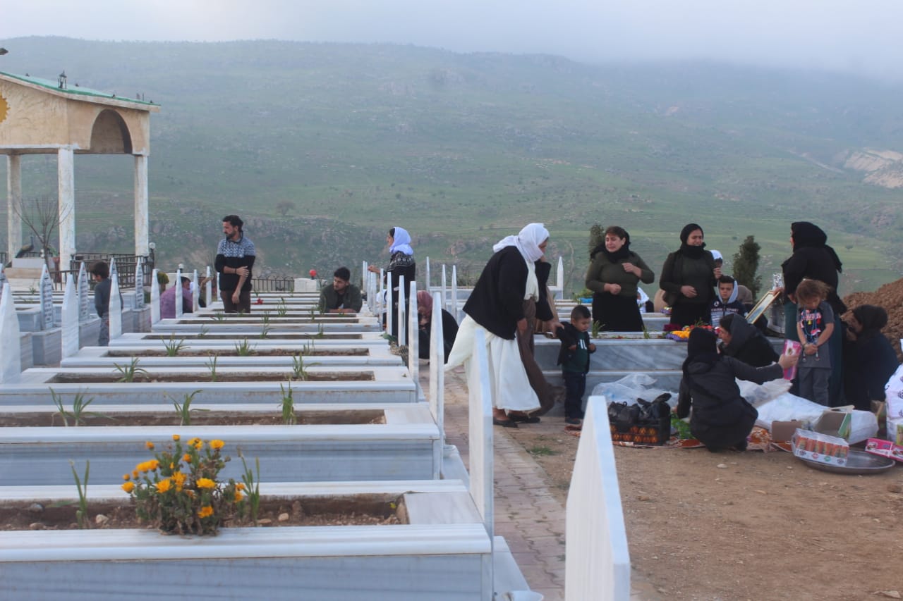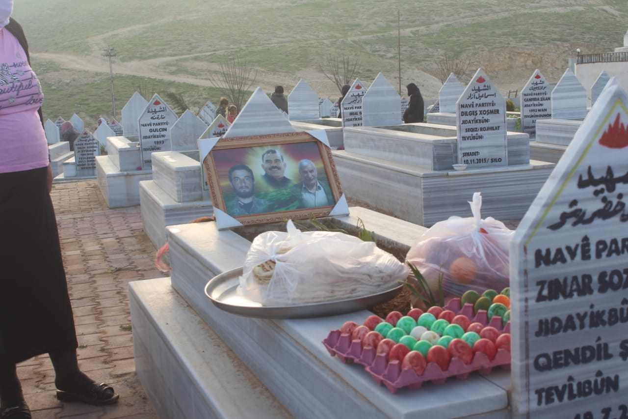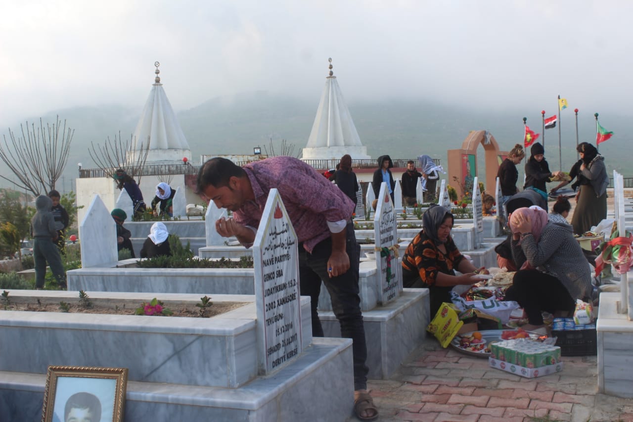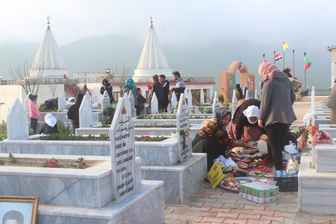 Çarşema Sor’u Rojava rengine göre kutlayan yurttaşlar, bu sabah Şehit Berxwedan ve Şehit Dilgeş şehitliklerini ziyaret etti. Yemek ve şeker dağıtan yurttaşlar hüzünlü bir bayram geçirdiklerini belirtti.