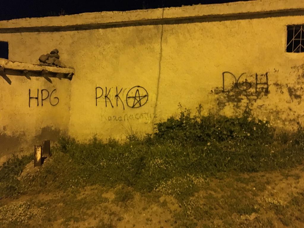 FARQİN – Halklar Önderi Abdullah Öcalan üzerindeki tecride karşı ile açlık grevlerine destek amaçlı Farqin’de Devrimci Gençlik Hareketi’ine bağlı Şehit Baran Mawa intikam birimleri tarafından yazılama eylemi gerçekleştirdi.