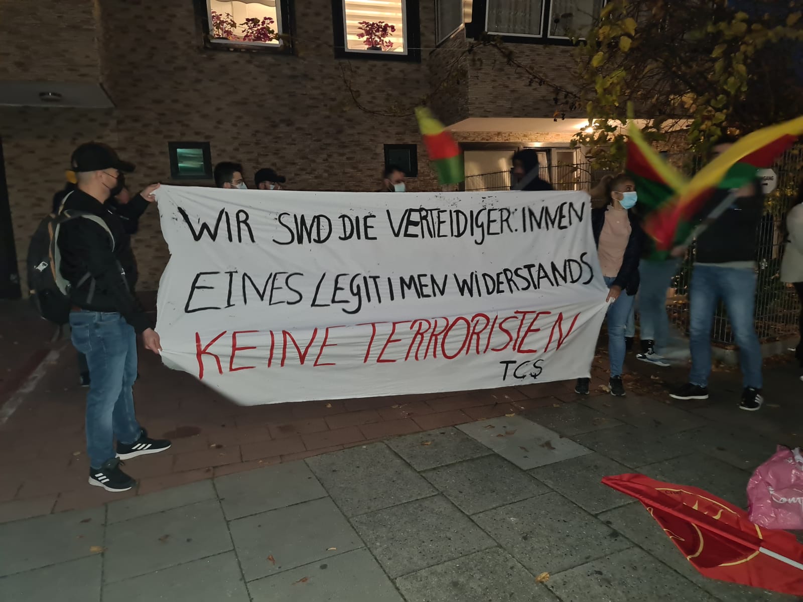 Akşam saatlerinde bir araya gelen TCŞ ve TekoJIN aktivistleri şölenin düzenleneceği salonun önünde faşist Alman polisinin almış olduğu kararı protetsto etmek istediler. Sabah saatlerinden itibaren salonun etrafı polisler etrafından çembere alınmıştı. TCŞ ve Kürdistan bayrakları açan gençleri Alman polisi çembere aldı. Ve sonrasında müdahalelerde bulundu. Gençler Alman devletinin almış olduğu karara ilişkin ise Kürtçe ve Türkçe açıklamalarda bulundular.