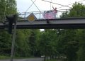 Jinên Ciwan ên Azad aktivistleri Almanya’nın Gelsenkirchen kentinde bir üst geçide Erdoğan faşizmine karşı pankart astı.