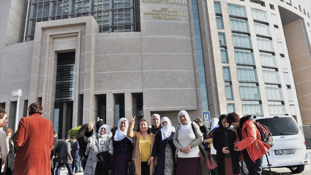 İSTANBUL – İmralı tecridine karşı başlatılan açlık grevi ve ölüm oruçlarına destek amacıyla Bakırköy Cezaevi önünde nöbet tutarken gözaltına alınan ‘Beyaz Tülbentli Anneler’in duruşması görüldü. Annelerin, “Örgüte bilerek ve isteyerek yardım etmek”, “Örgüt propagandası yapmak”, “2911 Sayılı Yasaya muhalefet” ve “Görevi yaptırmamak için direnme” iddiasıyla yargılandığı ilk duruşma Çağlayan 23. Ağır Ceza Mahkemesi’ne görüldü. Yargılanan 15 anne içerisinde Özgürlük İçin Hukukçular Derneği (ÖHD) üyesi Avukat Arzu Kayaoğlu’nun da bulunduğu duruşmaya, HDP İstanbul Eşbaşkanı Elif Bulut ve çok sayıda HDP üye ve yöneticisi katıldı.