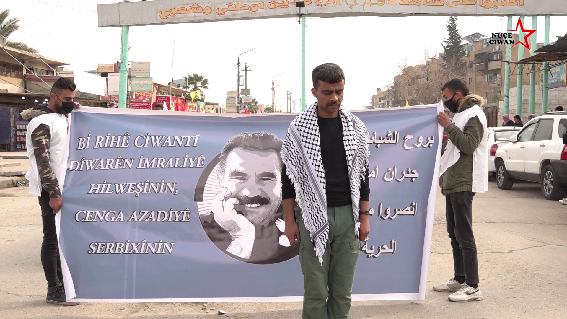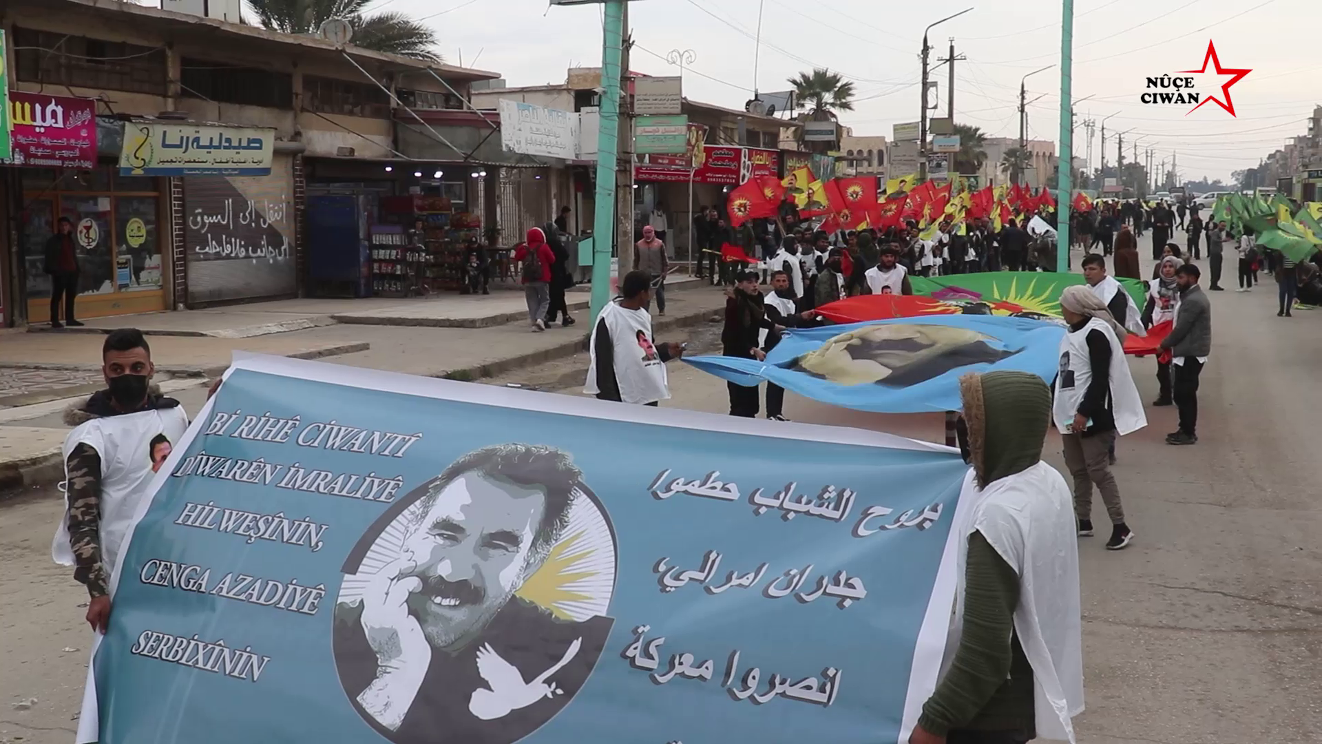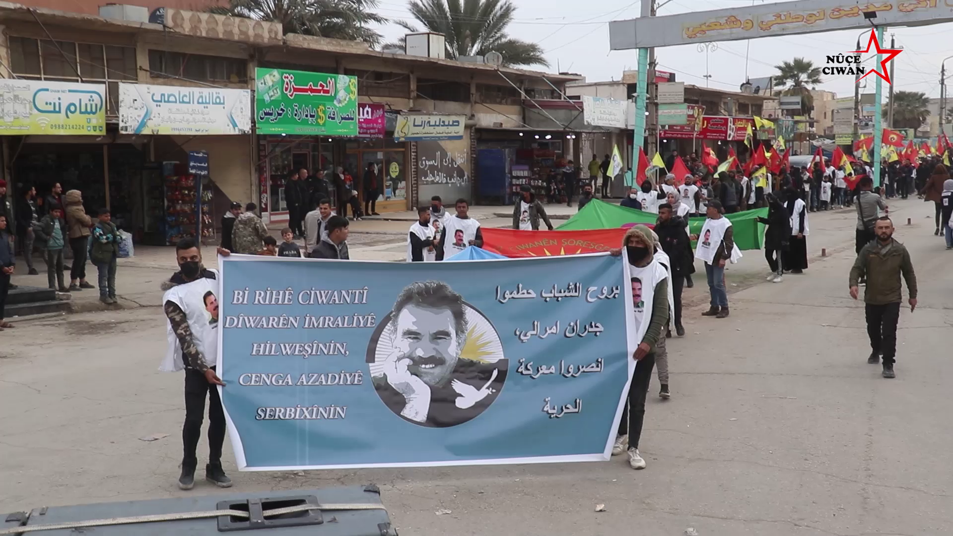 Devrimci Gençlik Hareketi ve Genç Kadınlar Birliği tarafından başlatılan uzun yürüyüş, Tebqa’nın Hadhiri kavşağı önünden başladı ve ilçedeki El Alam kavşağı’na doğru ilerledi.  Yürüyüşte uluslararası komployu kınayan sloganlar atılırken, Önder Apo’nun fiziki özgürlüğünü talep eden irade dolu sloganlar atılıyor. Ayrıca İmralıd’a Önder Apo şahsında verilen muazzam direniş ve işgalci Türk devletine karşı gerillalar tarafından verilen destansı direnişi sloganlarla selamlanıyor.