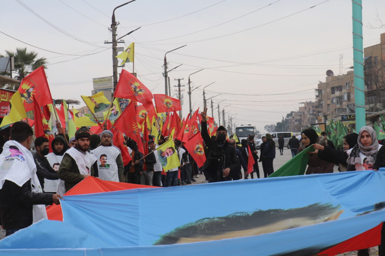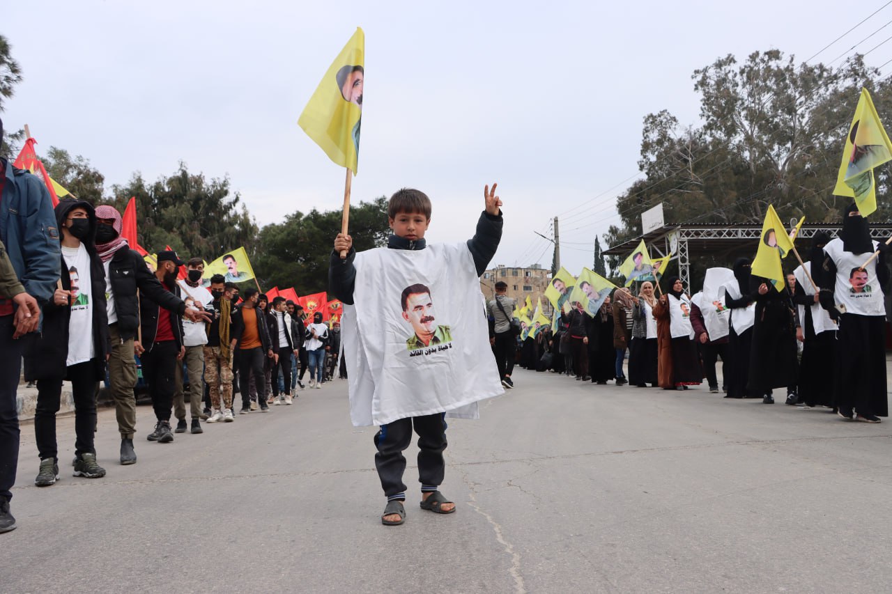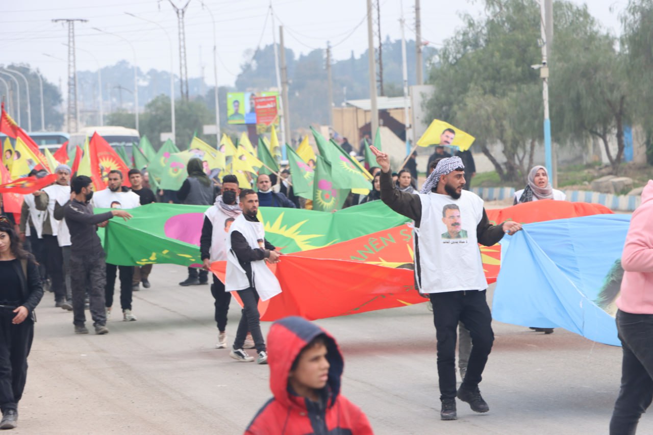 Devrimci Gençlik Hareketi ve Genç Kadınlar Birliği tarafından başlatılan uzun yürüyüş, Tebqa’nın Hadhiri kavşağı önünden başladı ve ilçedeki El Alam kavşağı’na doğru ilerledi.  Yürüyüşte uluslararası komployu kınayan sloganlar atılırken, Önder Apo’nun fiziki özgürlüğünü talep eden irade dolu sloganlar atılıyor. Ayrıca İmralıd’a Önder Apo şahsında verilen muazzam direniş ve işgalci Türk devletine karşı gerillalar tarafından verilen destansı direnişi sloganlarla selamlanıyor.