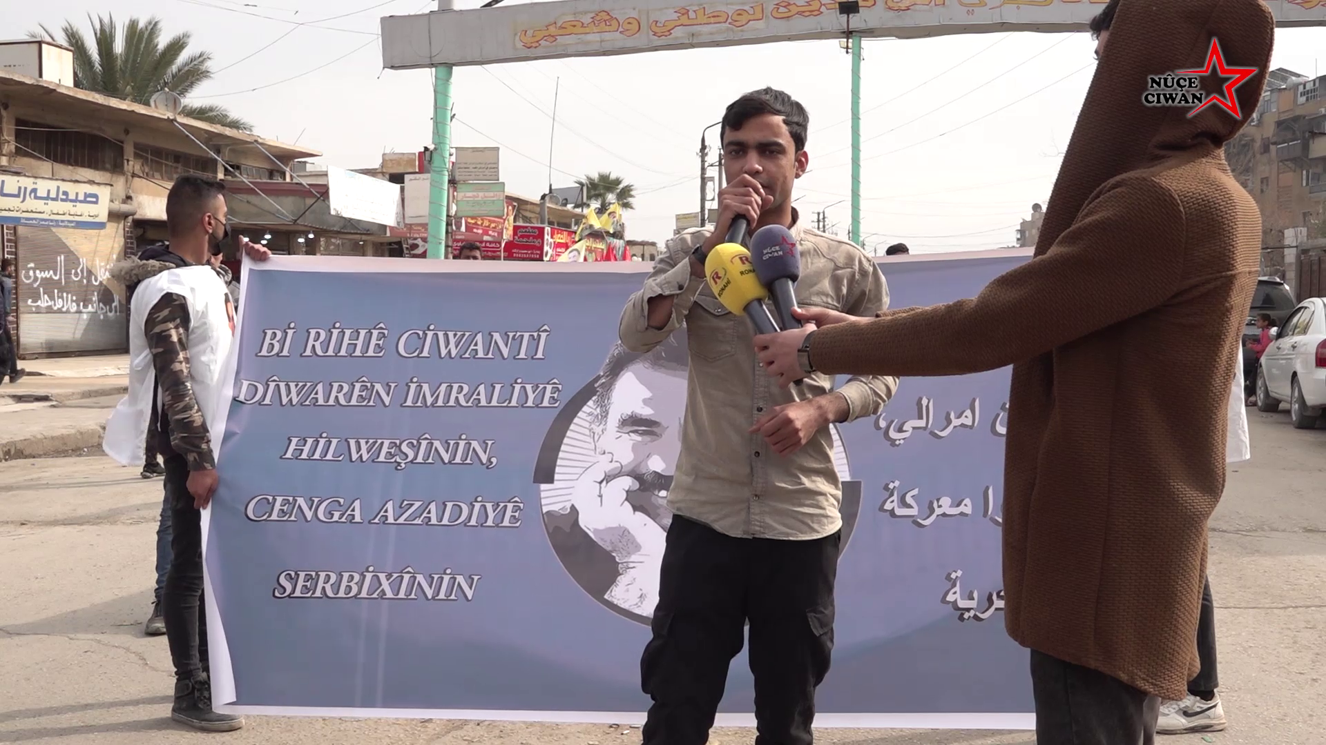 Başlangıçta, tüm katılımcılar şehitlerin ruhları anısına bir dakikalık saygı duruşunda bulundular, ardından Devrimci Gençlik Hareketi yöneticilerinden “Ahmed Al-Jumali” tarafından yürüyüş başlatıldığını duyuran bir açıklama yapıldı. Önder Apo’ya yönelik uluslararası komplodan bahseden Al Jumali, bu komplonun amacının özgürlük özlemi çeken halkın iradesini kırmak olduğunu belirterek, Önder Apo’nun fiziki özgürlüğü sağlanana kadar gençlik hareketinin ve genç kadınların direnişini ve mücadelesini süreceğini vurguladı.