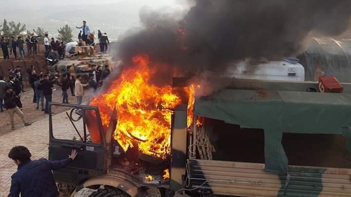HABER MERKEZİ – işgalci Türk devletinin Behdinan bölgesine yönelik hava saldırılarına karşı Türk devletinin askeri üssünü basan Şeladizê halkı işgalci Türk ordusuna ait tankı ateşe verdi.Engellemelere rağmen Sirê askeri üssüne giren halk, işgalci Türk güçlerine yönelik tepkileri sürüyor. Halk “Düşman, düşman Erdoğan” sloganı atarak, saldırılara karşı tepkilerini dile getiriyor.
