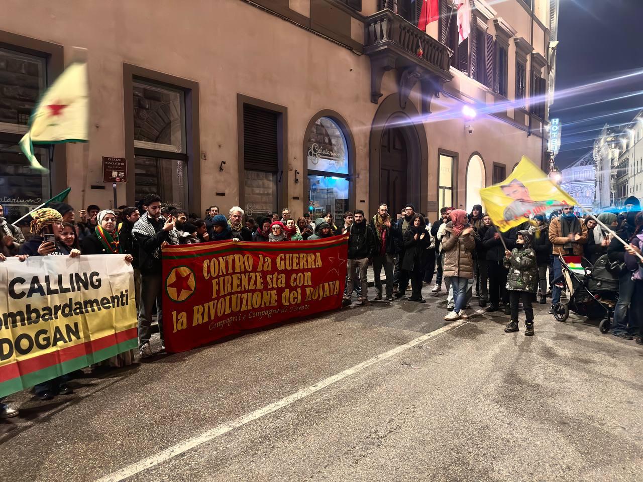 Floransa Valiliği önünde yapılan açıklamalarda, başta Kürt halkı olmak üzere ezilen halklara yönelik saldırıların teşhir edilmesi gerektiği vurgulandı. Dayanışmanın büyütülmesi çağrısı yapılırken, mücadelenin enternasyonal bir karakter taşıdığına dikkat çekildi. Eylem, yapılan konuşmalar ve atılan sloganların ardından olaysız bir şekilde sona erdi.
