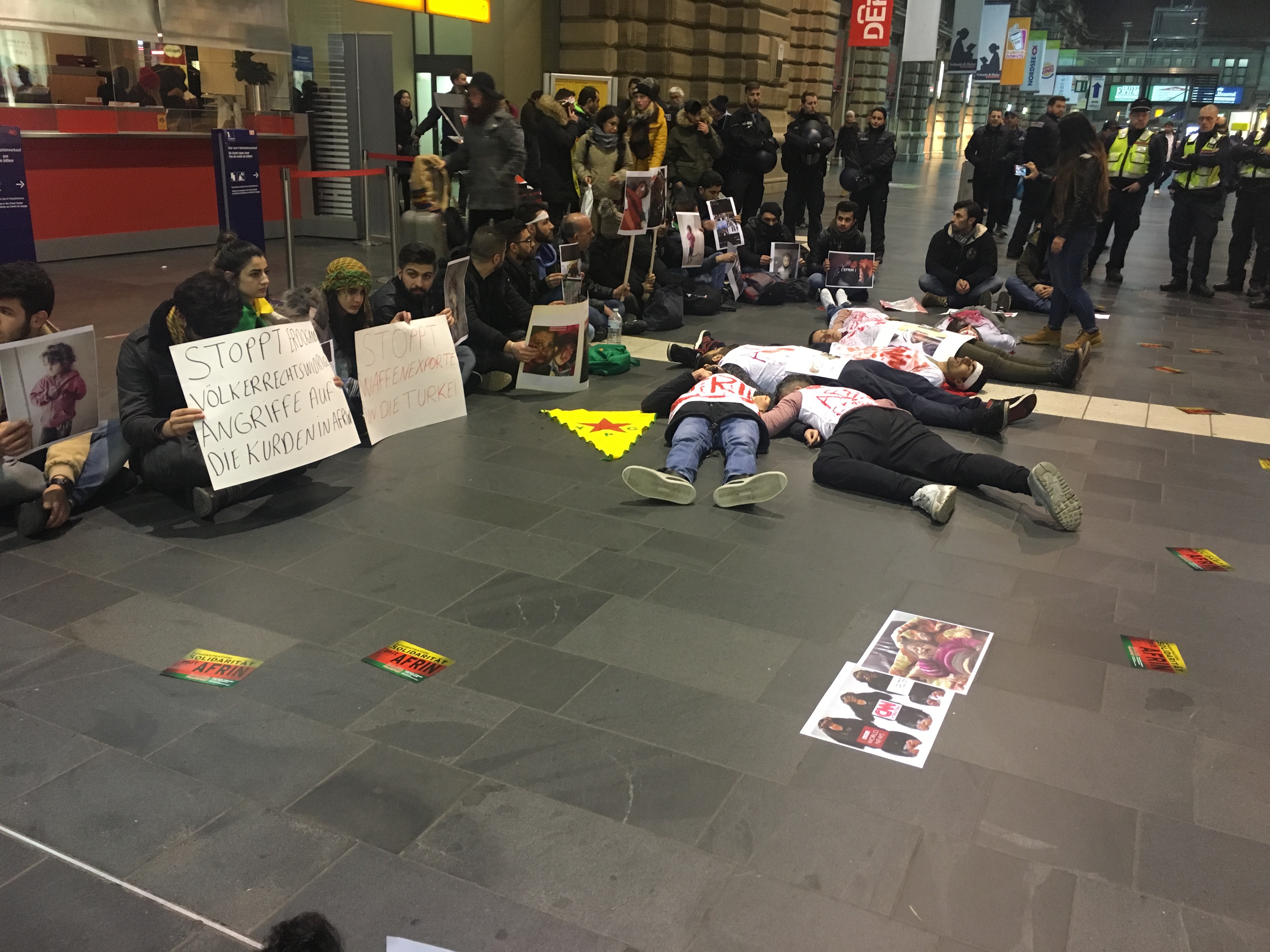 Dün akşam geç saatlerde Frankfurt’ta sivil itaatsizlik eylemi yapıldı. Sivil itaatsizlik eyleminin ardından merkezi istasyonda flashmop eylemi gerçekleştirerek, Efrîn katliamına dikkat çekildi.