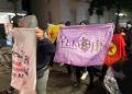 Aynı zamanda Rojava direnişini destekleyen ve Önder APO’nun fiziki özgürlüğünü talep eden pankartlar, PKK, YPG ve Önder APO bayrakları açıldı.