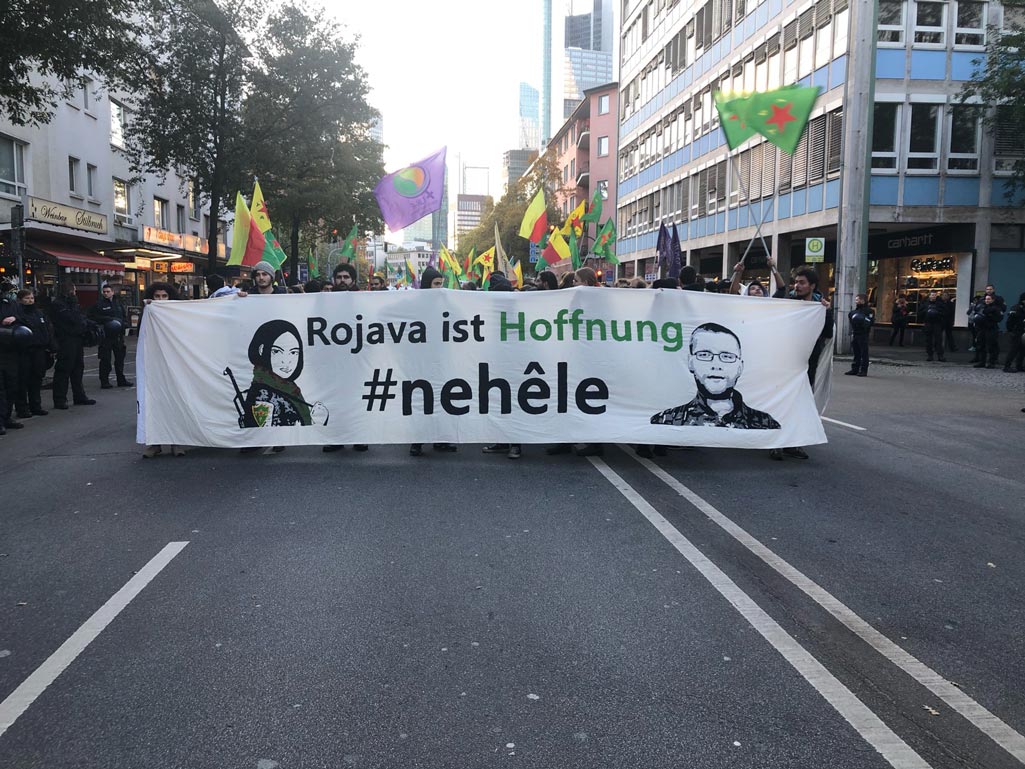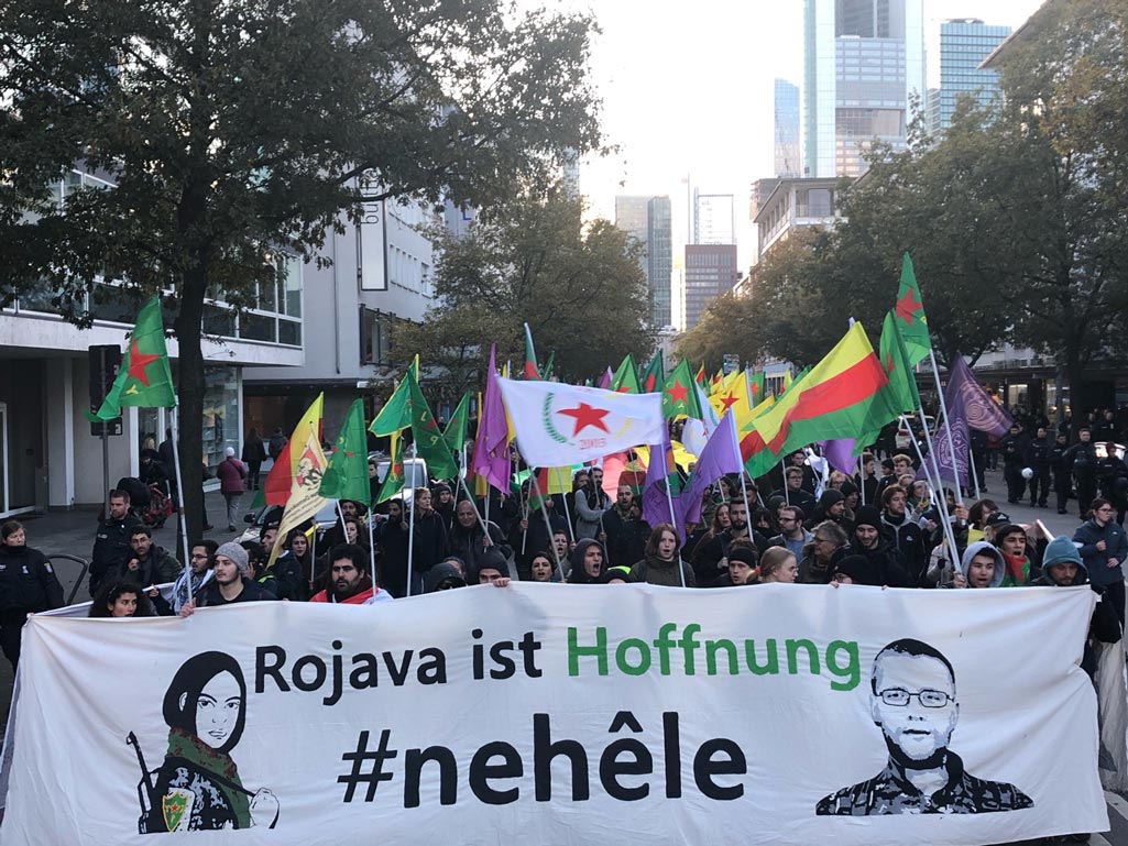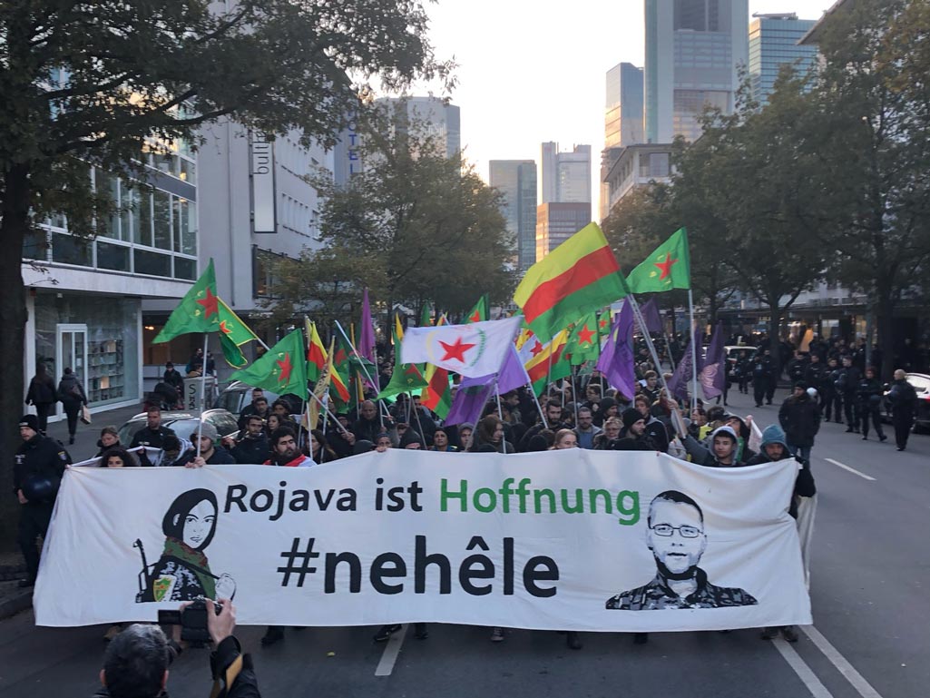 Türk devleti'nin Rojava'ya dönük işgal ve soykırım saldırılarını protesto etmek amacıyla bu gün Almanya'nın Frankfurt kentinde Nehêle hamlesi kapsamında gençlik öncülüğünde bir yürüyüş gerçekleştirildi.