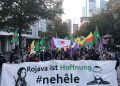 Frankfurt – 9 Ekim’den bu yana Rojava’ya dönük işgal ve soykırım saldırıları çok yoğun bir şekilde devam ediyor. Bu işgal saldırılarını protesto etmek için Almanya’nın Frankfurt kentinde Tevgera Ciwanên Şoreşger ve Jinên Ciwan en Azad’ın başlatmış olduğu Nehêle hamlesi kapsamında bir yürüyüş gerçekleştirildi. Frankfurt’un Merkezi bir yerinde saat 15:00’te başlayan yürüyüşe Hessen Eyaletindeki YXK/JXK, Yeni Demokratik Gençlik, Sosyalist Öğrenci Derneği, Women Defend Frankfurt Platformu ve Kawa-Federasyonu da destek verdi. Gençlik öncülüğünde gerçekleşen eyleme binlerce Kürdistanlı ve farklı enternasyonalist kesimler katıldı. ‘Rojava Umuttur’ Nehêle pankartının da taşındığı yürüyüşte Onur Direnişini destekleyen sloganlar susmadı. Yürüyüş Bijî Berxwedana Rojava sloganları ile sona erdi.