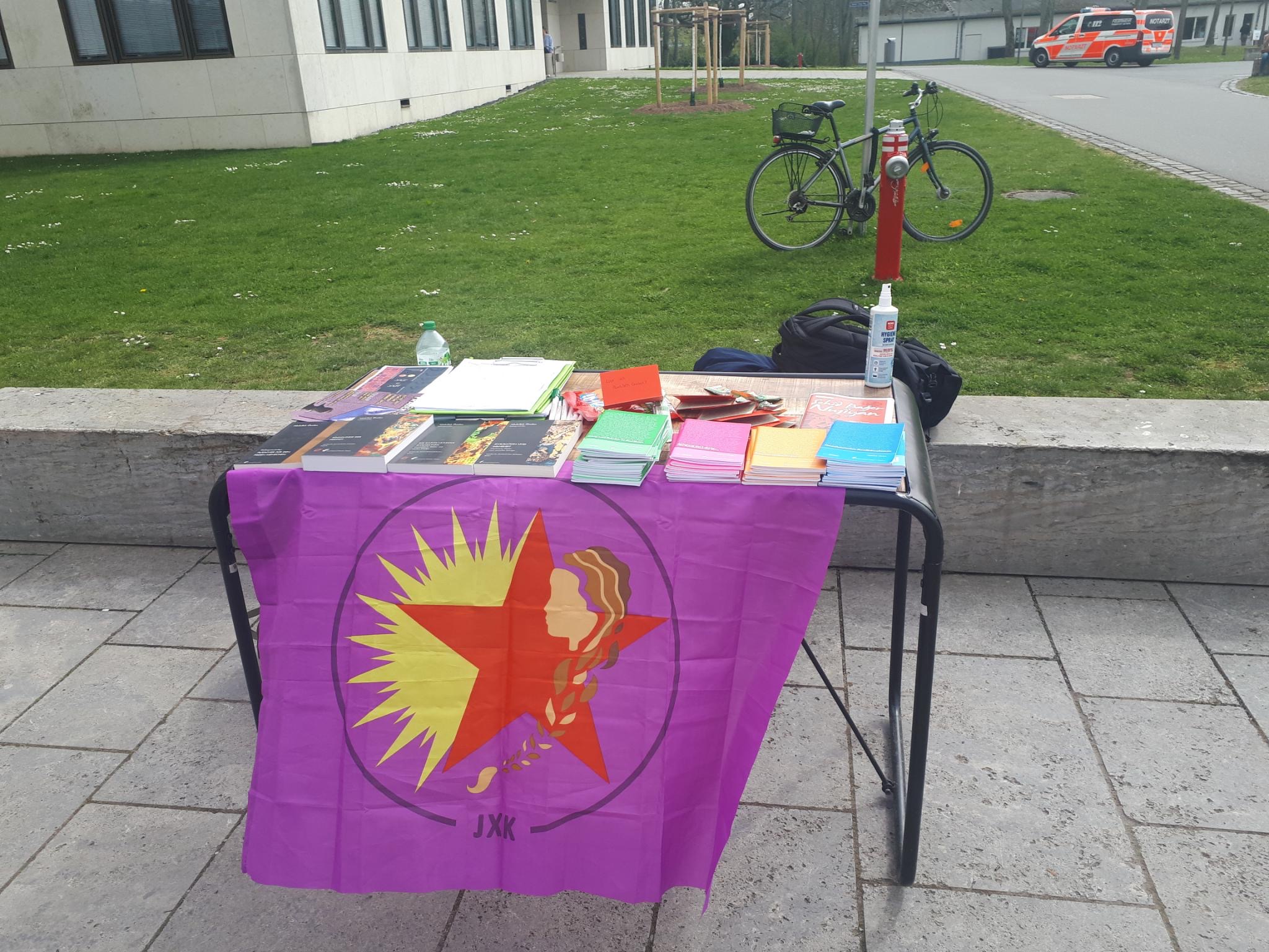 FRANKFURT – YXK (Yekîtiya Xwendekarên Kurdistan‎) ve JXK (Jinên Xwendekarên Kurdistan) aktivistleri öncülüğünde Önder Öcalan’ın fiziki özgürlüğünün sağlanılması için Johann Wolfgang Goethe Üniversitesi’nde bir stand açıldı.