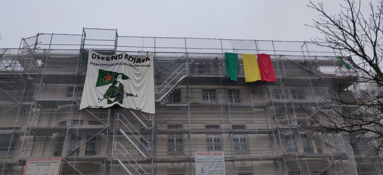 Frankfurt’taki eski Türk Konsolosluğuna Rojava için pankart asıldı
