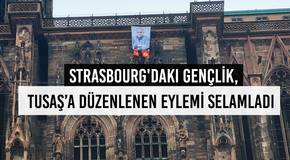STRASBOURG – Strasbourg’un en önemli ve tarihi mekânı Notre-Dame Katedrali’ne Önder Apo’nun posteri ve PKK bayrakları asılarak tarihi 23 Ekim TUSAŞ eylemi selamlandı. İmralı İşkence ve Soykırım Sistemi’ne dikkat çekildi.