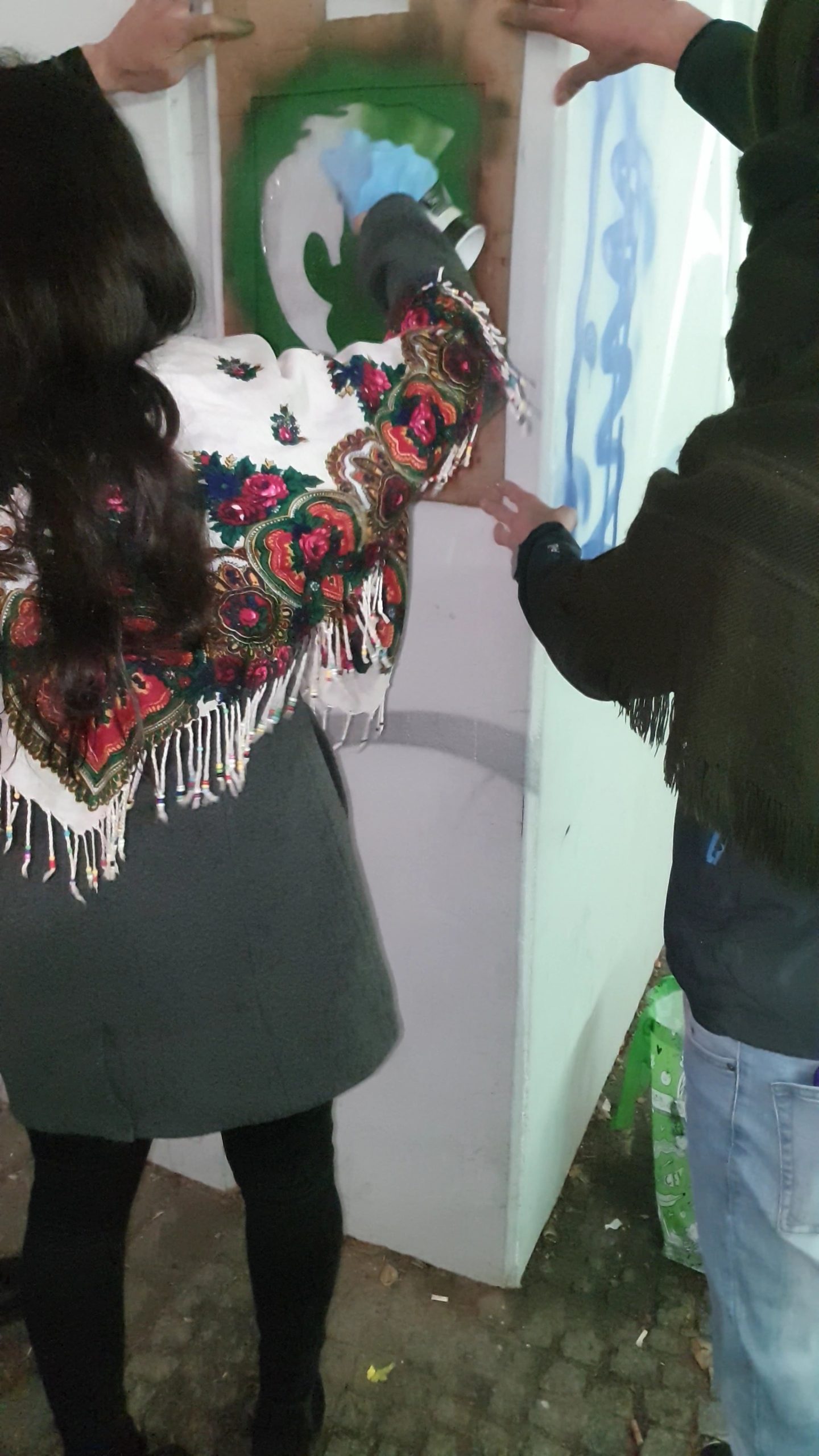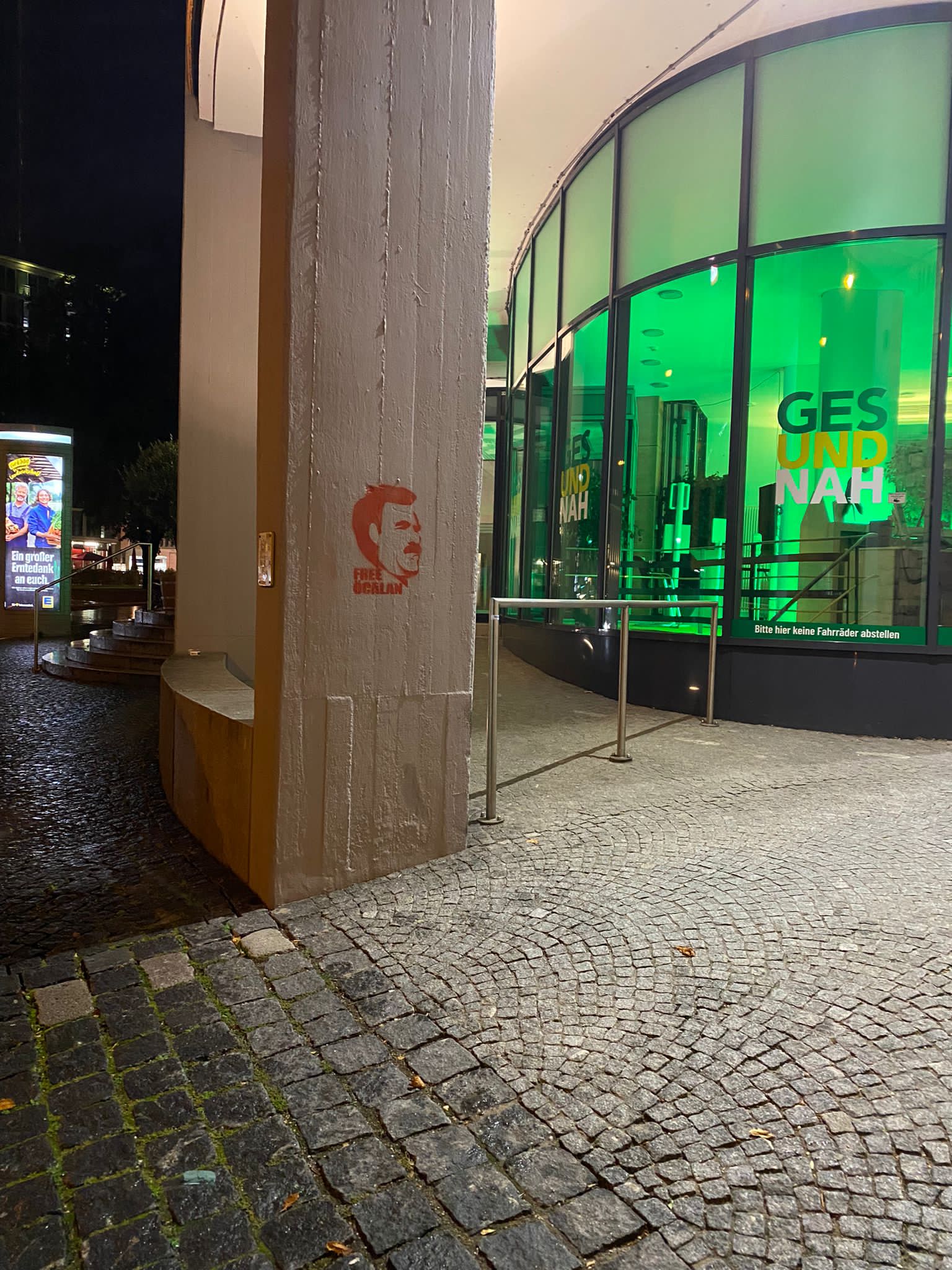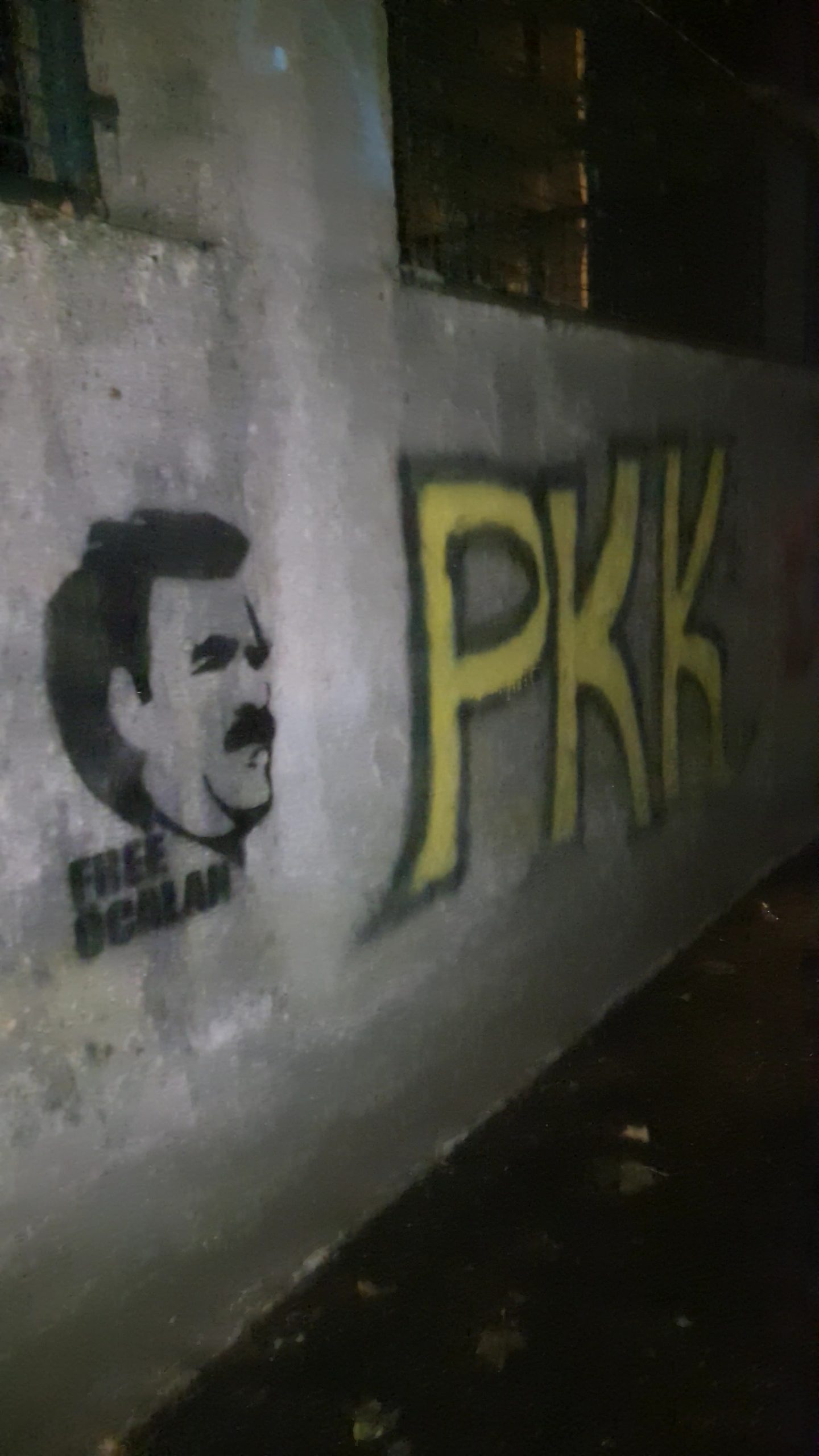 Aktivistler eylemleri boyunca şehir merkezinde Önder Öcalan’ın portrelerini sprey boya ile duvarlara çizdi ve bir açıklamada bulundular.