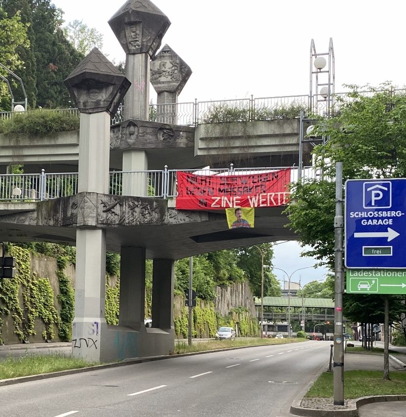 14 Mayıs Perşembe günü akşam saatlerinde Almanya’nın Freiburg kentinde TCŞ ve JCA aktivisti gençler 2 köprüye pankart astı. Gençler pankartlara Almanca “Zînî Wertê’deki katliama sessiz kalma” yazarken, pankartın yanında Halklar Önderi Abdullah Öcalan’ın posterini de astı.