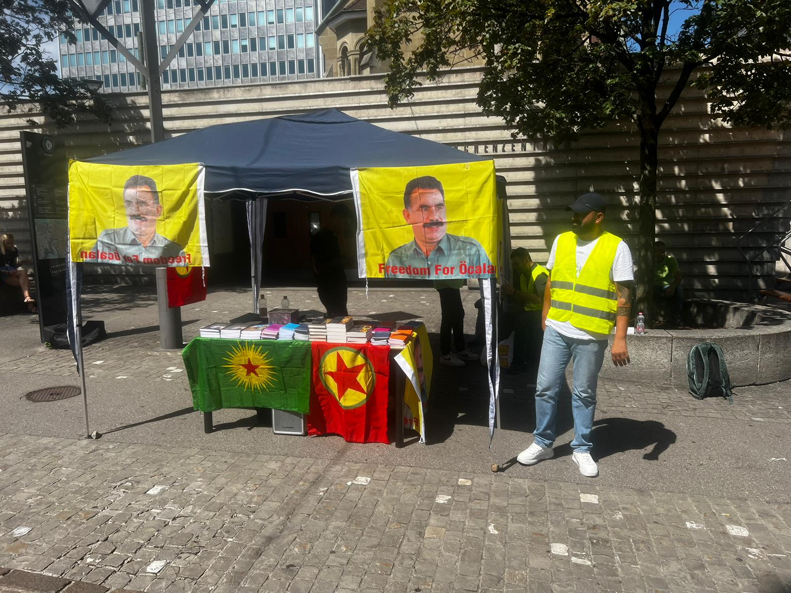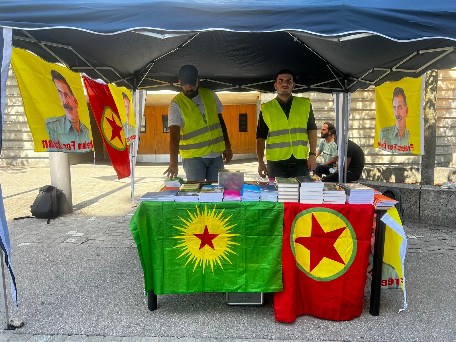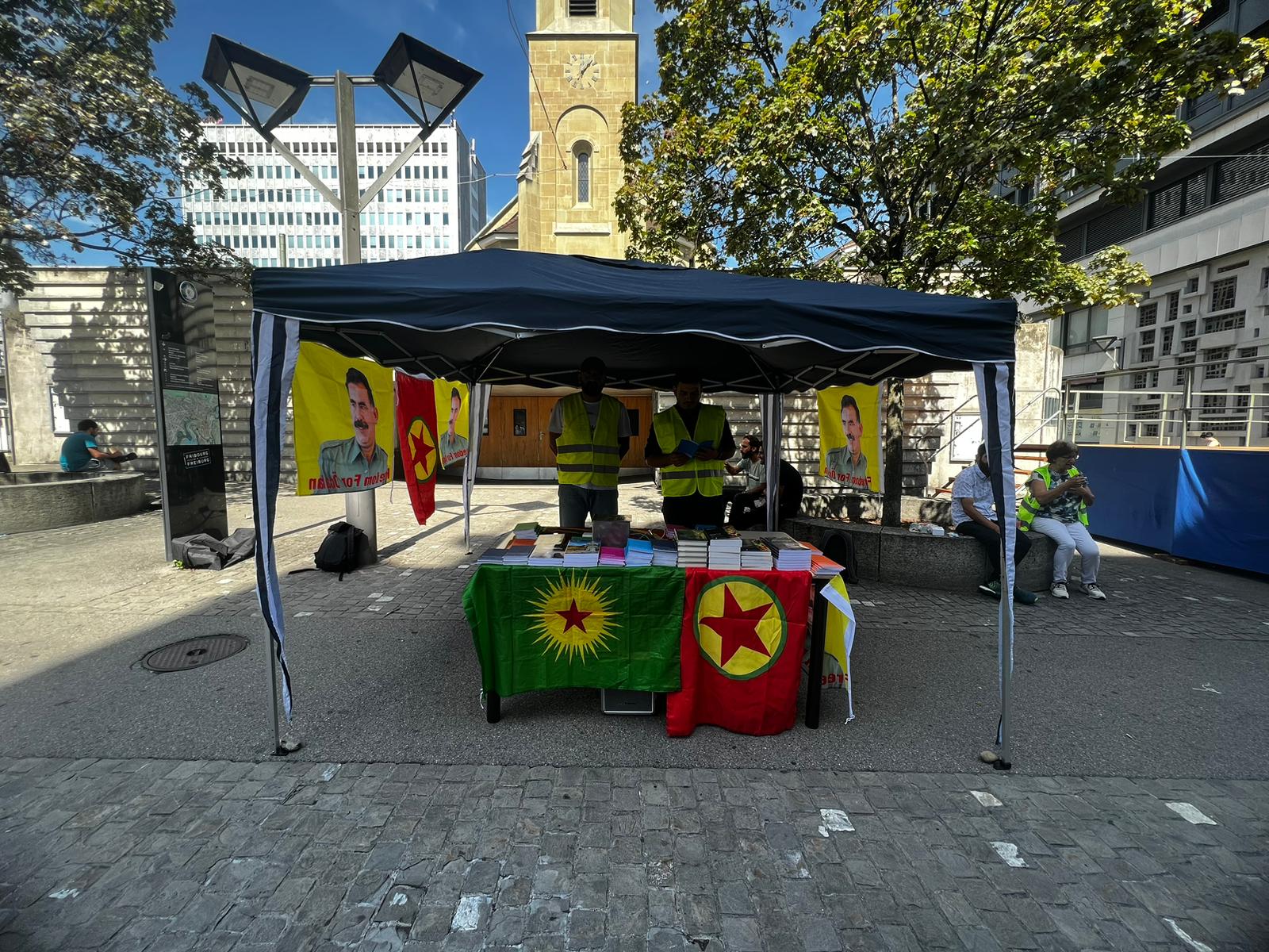Rue de Romont’da kurulan stantta Önder APO’nun kitaplarının yanı sıra Kurdistan ile ilgili kitapçıklar dağıtıldı.