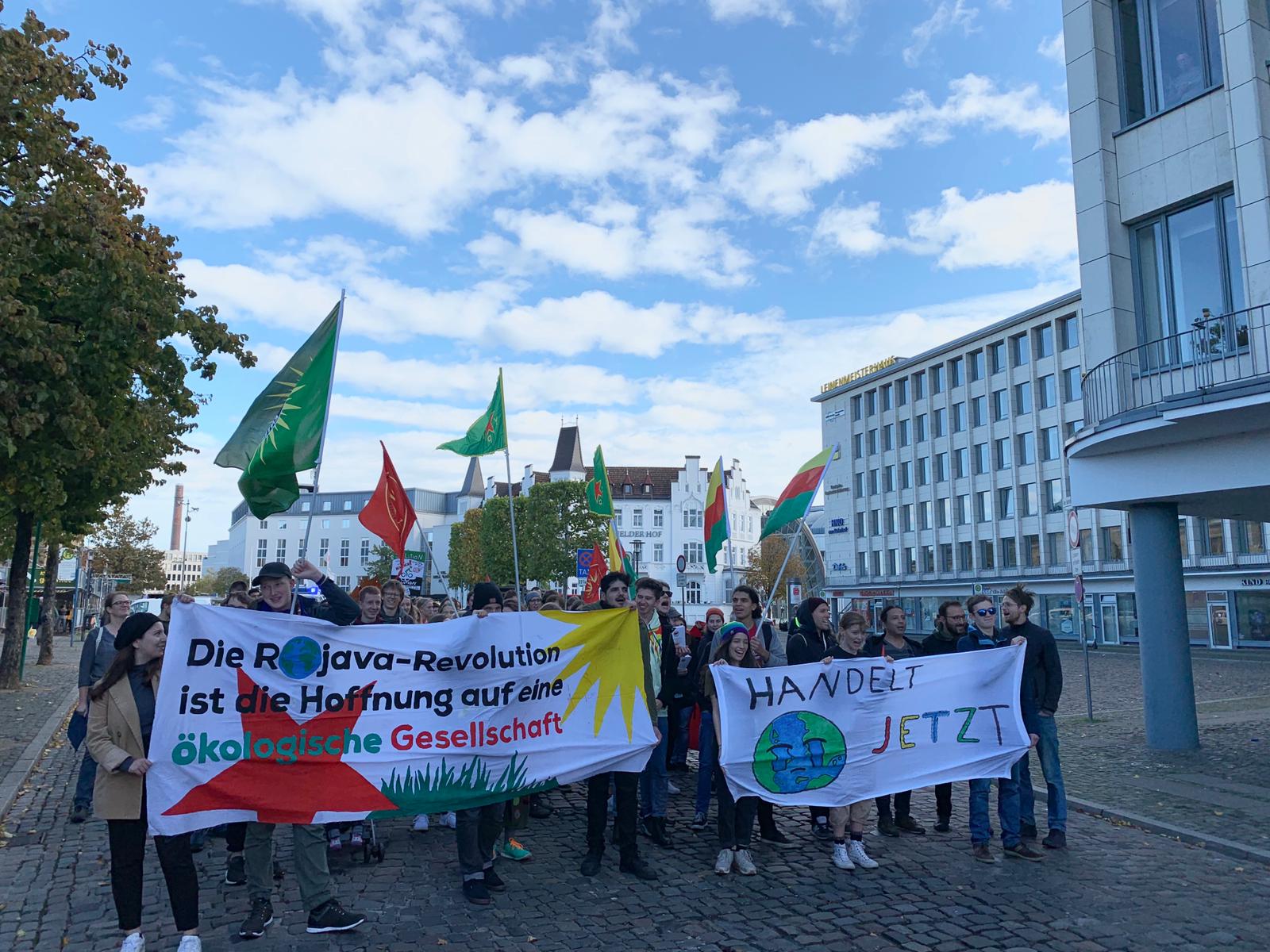 Ekoloji hareketi Fridays for Future ve Kürt gençleri Almanya'nın Bielefeld şehrinde Rojava için ortak bir eylem düzenledi.