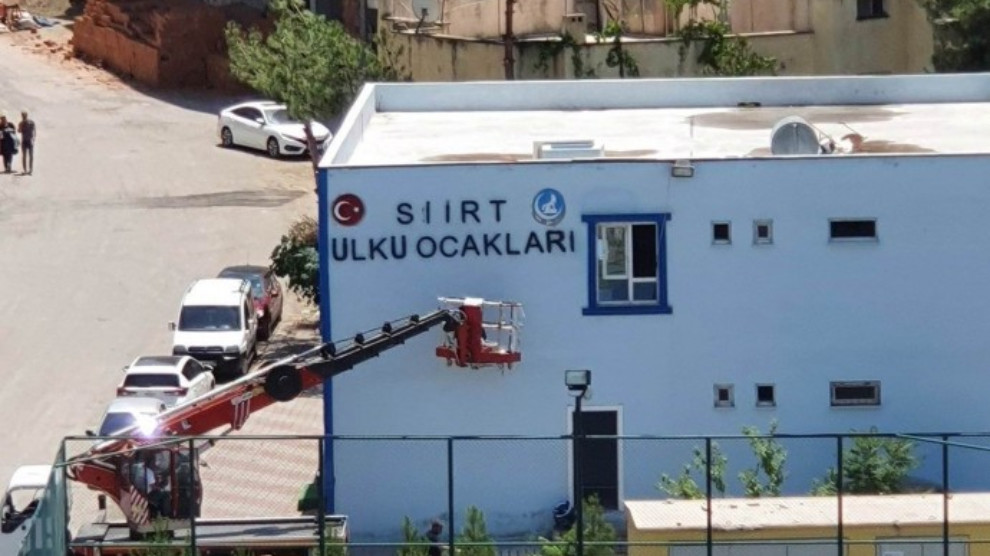 SÊRT – Sêrt Belediyesi gaspçı kayyumu, Bahçelievler Mahallesi’nde bulunan taziye evini Ülkü Ocakları’na tahsis etti. Kararın 6 Temmuz’da encümenler ile yapılan meclis toplantısında alındığı öğrenildi. Kararın ardından taziye evi binasına ırkçı Ülkü Ocakları’nı simgeleyen kurt işaretli semboller asıldı.