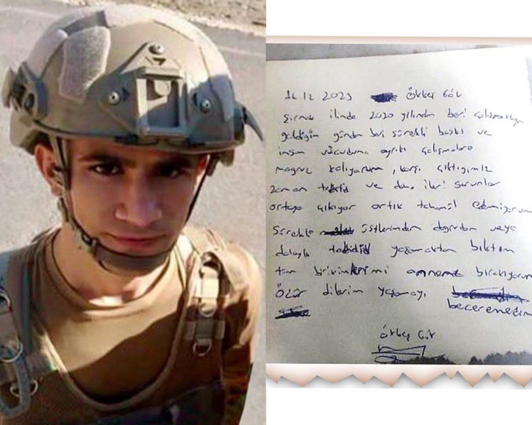 HABER MERKEZİ- Gaziantep’te intihar eden uzman çavuş Ökkeş Gök’ün intihar etmeden yazdığı son mektubu ortaya çıktı. Gök yazdığı mektubunda üstleri tarafından sürekli doğrudan veya dolaylı olarak tehdit edildiğini belirtiyor.