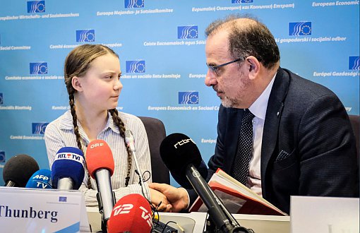 HABER MERKEZİ – İklim aktivisti Greta Thunberg, Perşembe günü Avrupa Birliği (AB) konferansında politikacılara okul grevlerinin hedefini anlattı ve iklim değişikliğini önlemek için acilen harekete geçilmesi çağrısını bu kez Brüksel’de tekrarladı.”Avrupa Ekonomik ve Sosyal Komitesi” (EESC) toplantısında konuşan Greta 16 yaşındaki aktivist, AB Komisyon Başkanı Jean-Claude Juncker ve diğer politikacılara hitap ederken, politikacıları “bizim jenerasyonumuzun temizlemesi için pisliklerini halının altına süpürmekle” suçladı.