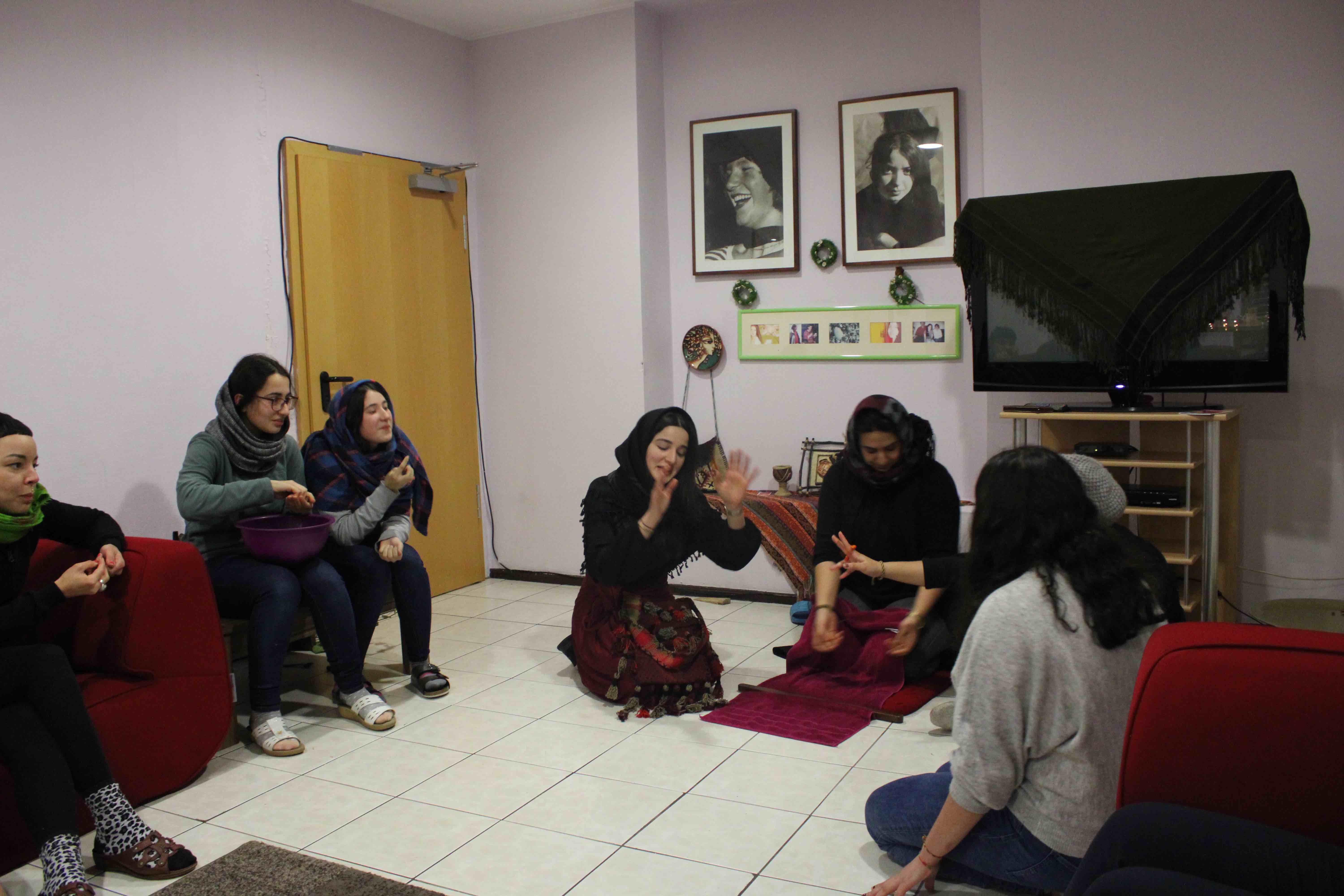 HABER MERKEZİ – Almanya’nın her tarafından bir araya gelen ve yaşları 13-30 arası değişen Kürt ve enternasyonalist kadınlar, 21-28 Aralık tarihleri arasında bir genç kadın kampı gerçekleştirdi. Kampta bir araya gelen genç kadınlar, burada yarattıkları sıcak atmosfer ve birbirleriyle olan paylaşımları ile ataerkilliğe karşı mücadele konusundaki farkındalıklarını geliştirdi. Neolitik zamandan Sümer döneminde ortaya çıkan cinsiyetçiliğe, Kürt kadınlarının tarihine ve Jineolojî’ye… bu kamp kadın tarihinin içinde bir zaman yolculuğu gibiydi. Boş zamanlarda yapılan aktiviteler, grup ve atölye çalışmalarının düzenlenmesi, günlük yaşamı renkli hale getirdi.