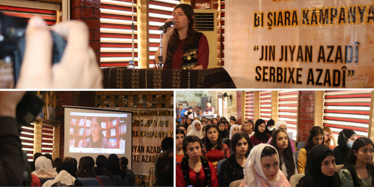 TABQA- Yekitiya Jinên Ciwan “Jin Jiyan Azadî Serbixe Azadî” kampanyası kapsamında Önder Apo’nun fiziki özgürlüğü için konferans gerçekleştiriyor.