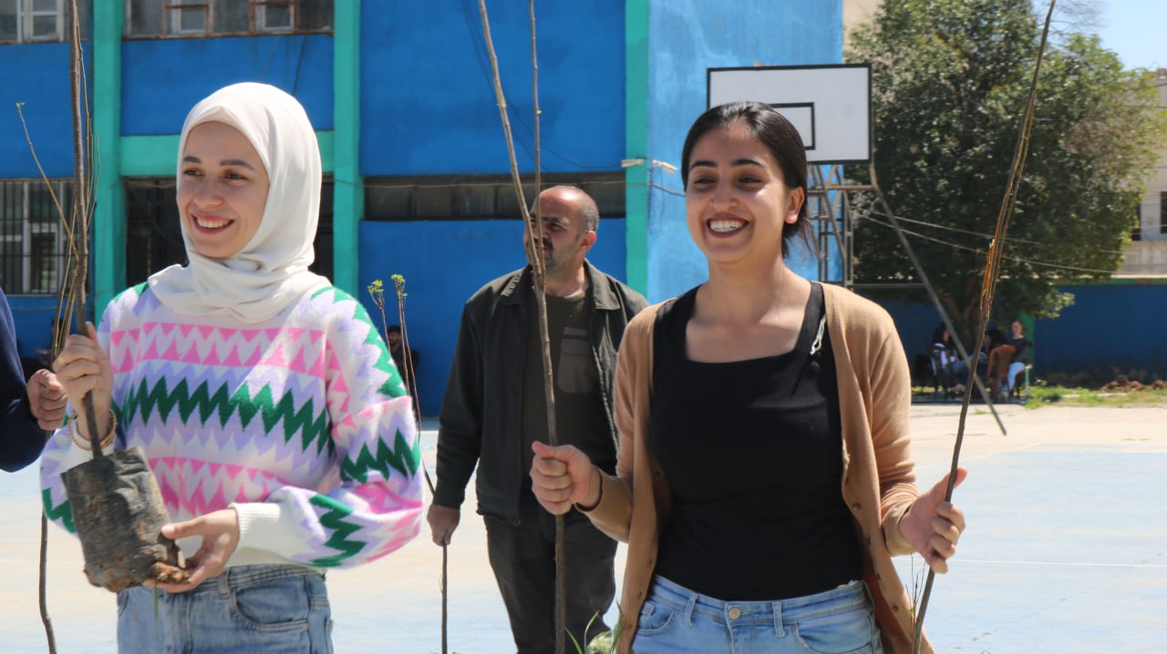 QAMIŞLO – Bugün Qamişlo kentinde genç kadın öğrenciler, Önder Apo’nun 75’inci yaş gününün yaklaşması nedeniyle Rojava Üniversitesi Hukuk Fakültesi’nde ağaç dikti. 4 Nisan’ı kutlamak için düzenlenen etkinliğe onlarca genç kadın katıldı.