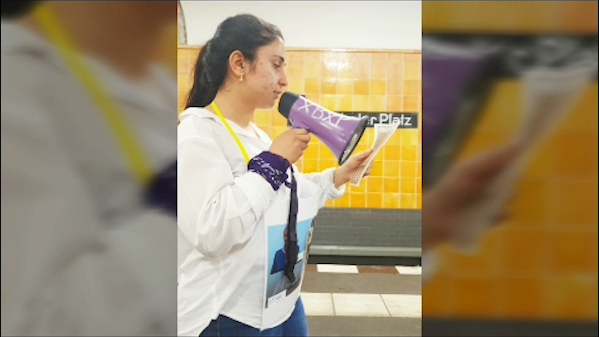 BERLİN – Genç kadınlar Almanya’nın başkenti Berlin’de Halklar Önderi Abdullah Öcalan’a uygulanan tecridi protesto etti. Berlin metrolarında ellerinde megafonlarla konuşmalar yapan genç kadınlar bu sırada yolculara Almanca hazırladıkları bildirileri de dağıttı. Yapılan konuşmalarda ve dağıtılan bildirilerde Leyla Güven öncülüğünde başlayan süresiz-dönüşümsüz açlık grevleri ve eylemcilerin talepleri dile getirildi. Alman basını başta olmak üzere tüm Avrupa basınının ve kurumlarının eylemleri görmezlikten geldiğini belirten genç kadınlar Avrupa’nın bu tutumunu teşhir etti. Genç kadınlar Avrupa’nın dört bir yanında devam etmekte olan süresiz-dönüşümsüz açlık grevlerinden de bahsetti ve eylemcilerin sağlık durumlarının endişe verici olduğunu anlattı. Eylemi gerçekleştiren genç kadınlar metrolarda seyahat eden yolcuları tecride karşı çıkmaya ve açlık grevlerine destek vermeye çağırdı.