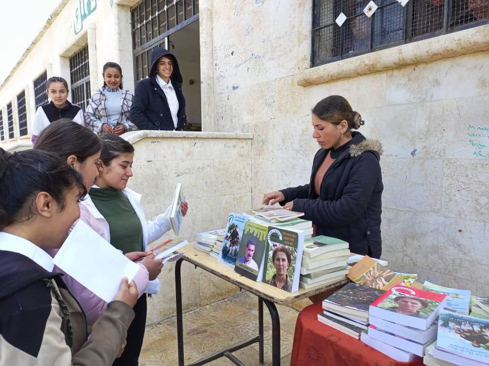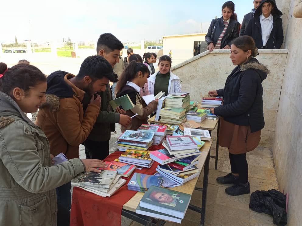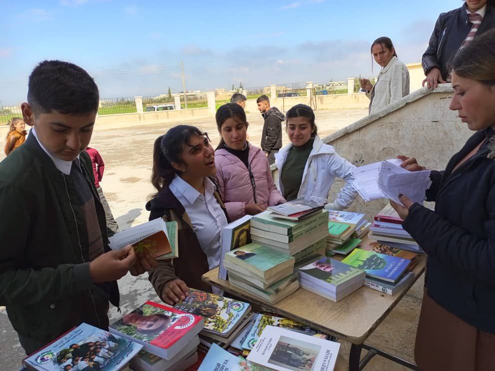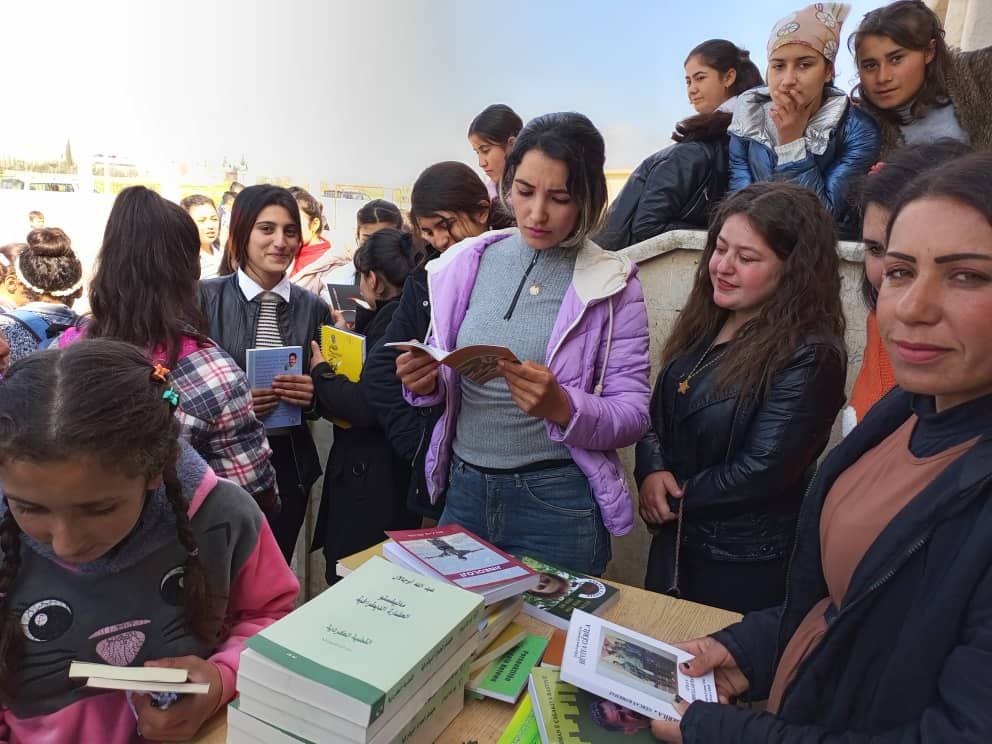 KOBANÊ- Talik lisesi genç kadın öğrencileri Önder APO’nun fikirlerini yaymak için faaliyetlerine devam ediyor. Önder Apo’nun kitaplarından ve Gençlik dergilerinden oluşan stant açan genç kadın öğrenciler. Önderlik fikrini tüm genç kadınlara ulaştırmak amacında. Öğrenciler tarafından ilgiyle karşılaşan stantta ayrıca Önder Apo’nun fiziki özgürlüğü için imza ve mektup da toplanıyor.