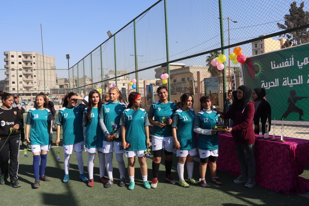 RAQA- Kadına yönelik şiddetle mücadeleye günü olan 25 Kasım etkinlikleri çerçevesinde, Raqa Genç Kadınlar Birliği ve Kuzey Doğu Suriye Gençlik ve Spor Meclisi Genç Kadınlar Komitesi, “Jin Jiyan Azadî ile kendimizi koruyalım” sloganıyla bir dizi spor etkinliği düzenledi.