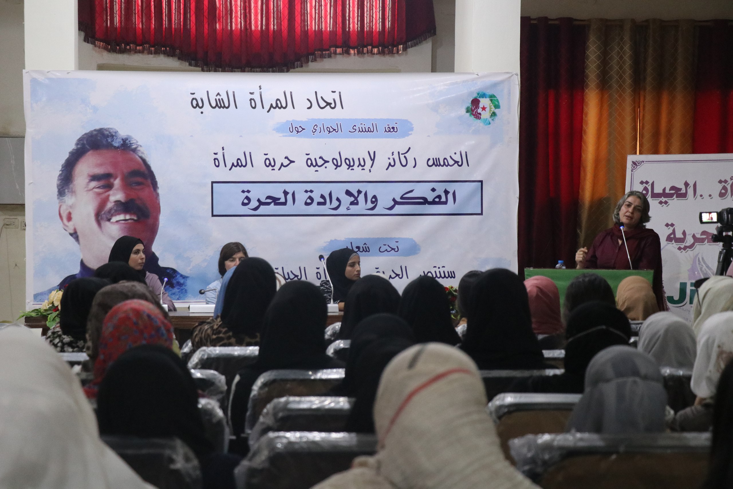 Daha sonra Önder APO’nun düşünce ve felsefesini, kadınların özgür düşünce ve iradesini, toplum zihniyetinden nasıl kurtulacağını konu alan sinevizyon izlendi. Ardından birçok alandan gelen genç kadınların katılımıyla bir tartışma oturumu yapıldı, ardından katılımcıların genç kadınların özgürlüğüne ilişkin önerileri alındı.