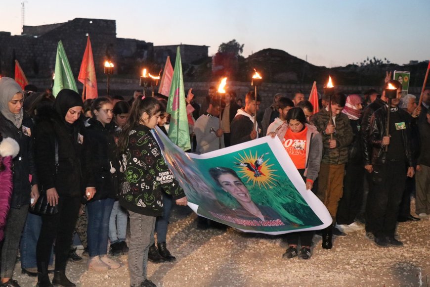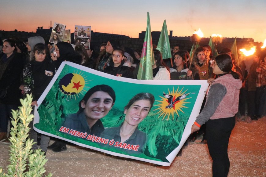 Dünya Emekçi Kadınlar Günü münasebetiyle Minbic’te Genç Kadınlar Birliği tarafından meşaleli yürüyüş düzenlendi