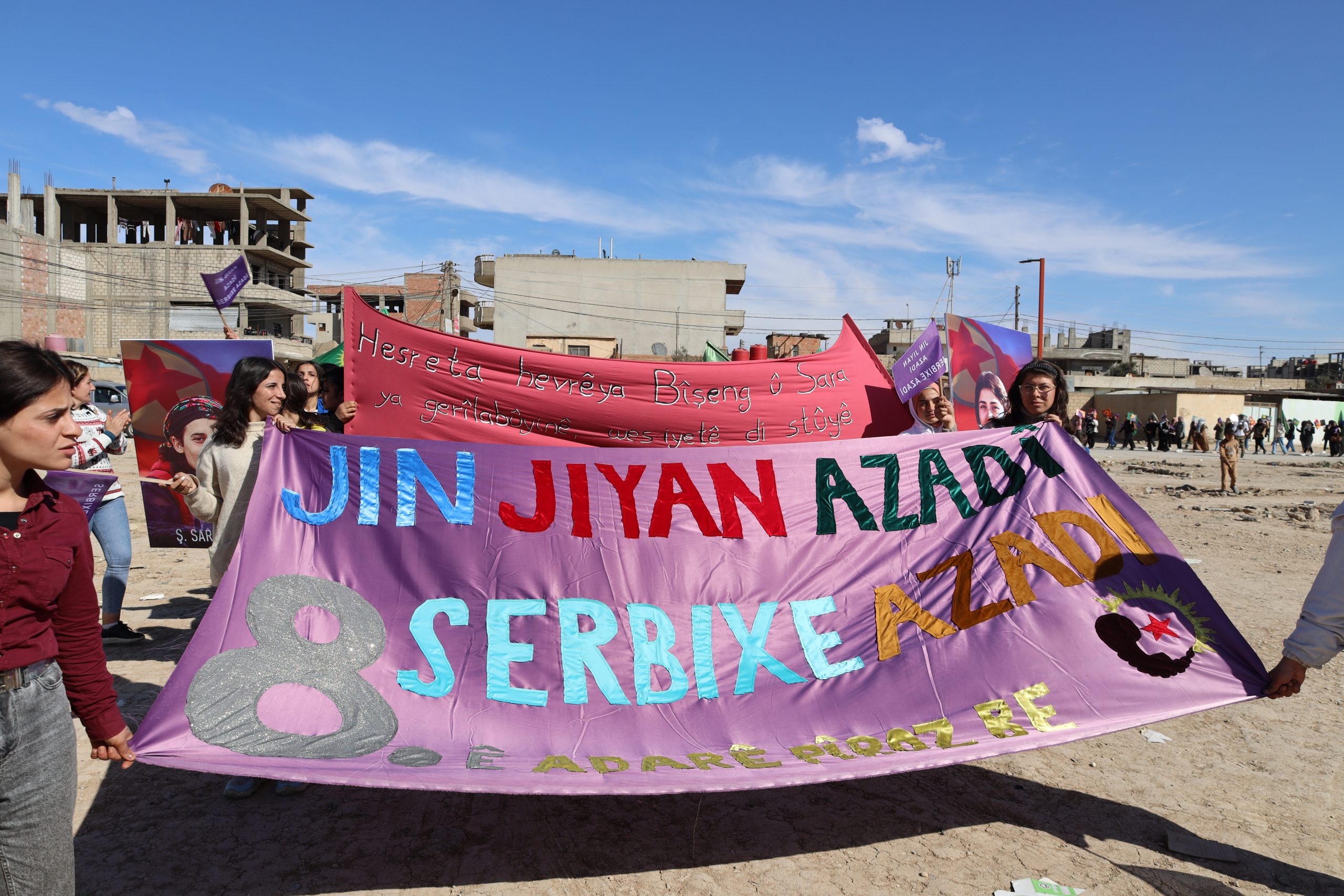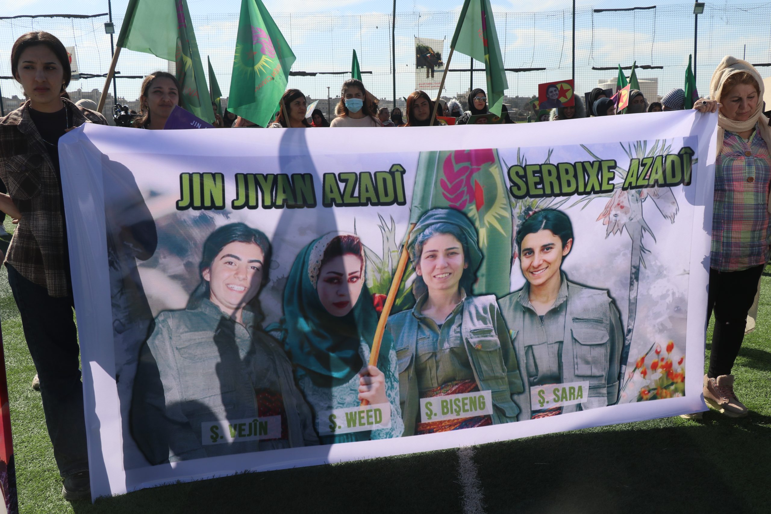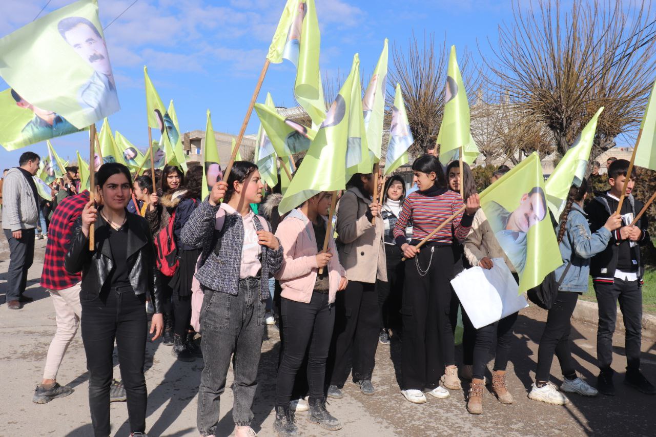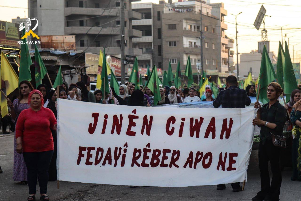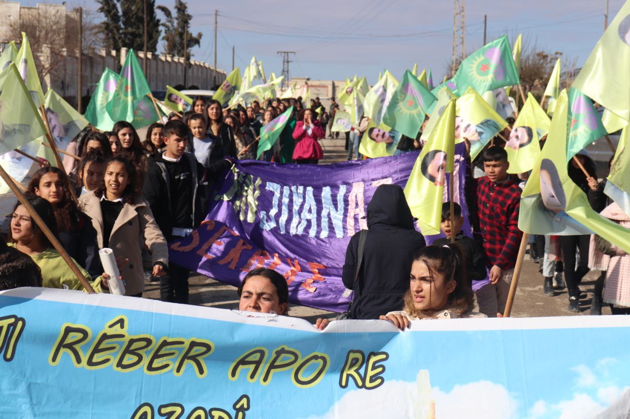 8 Mart’ta Genç Kadınlar, Önder APO’nun fiziki özgürlüğü için çağrıda bulundu. Kadınların özgürlüğünün yolunu belirleyen Önder APO’ydu. Bu nedenle ve özellikle Dünya Emekçi Kadınlar Günü’nde Önder APO’ya sahip çıkılmaı gerekiyor. Heseke’de Cizir bölgesi düzeyinde şehitlerin anısına ve Önder APO’nun fiziki özgürlüğü için kitlesel bir yürüyüş düzenlendi.
