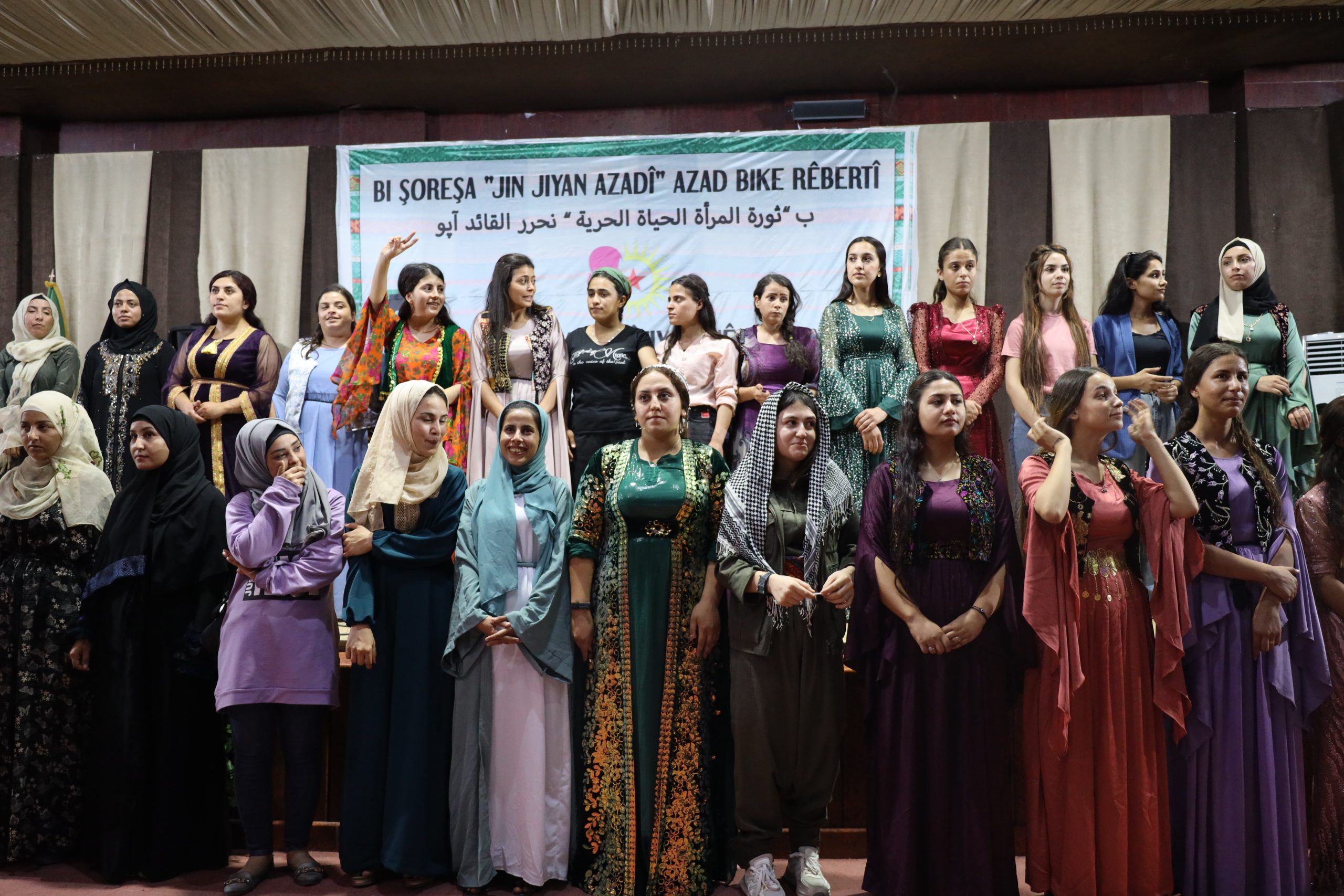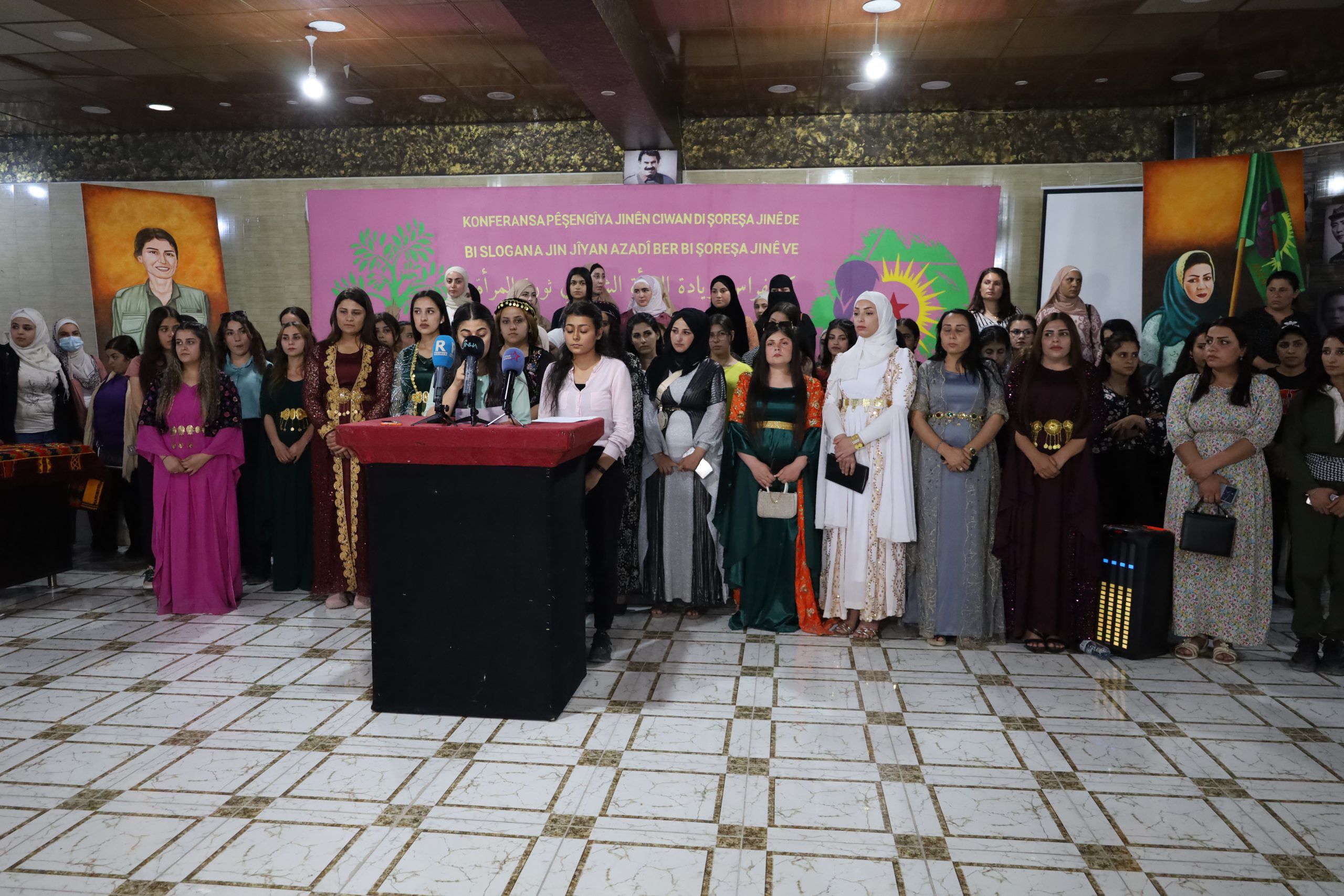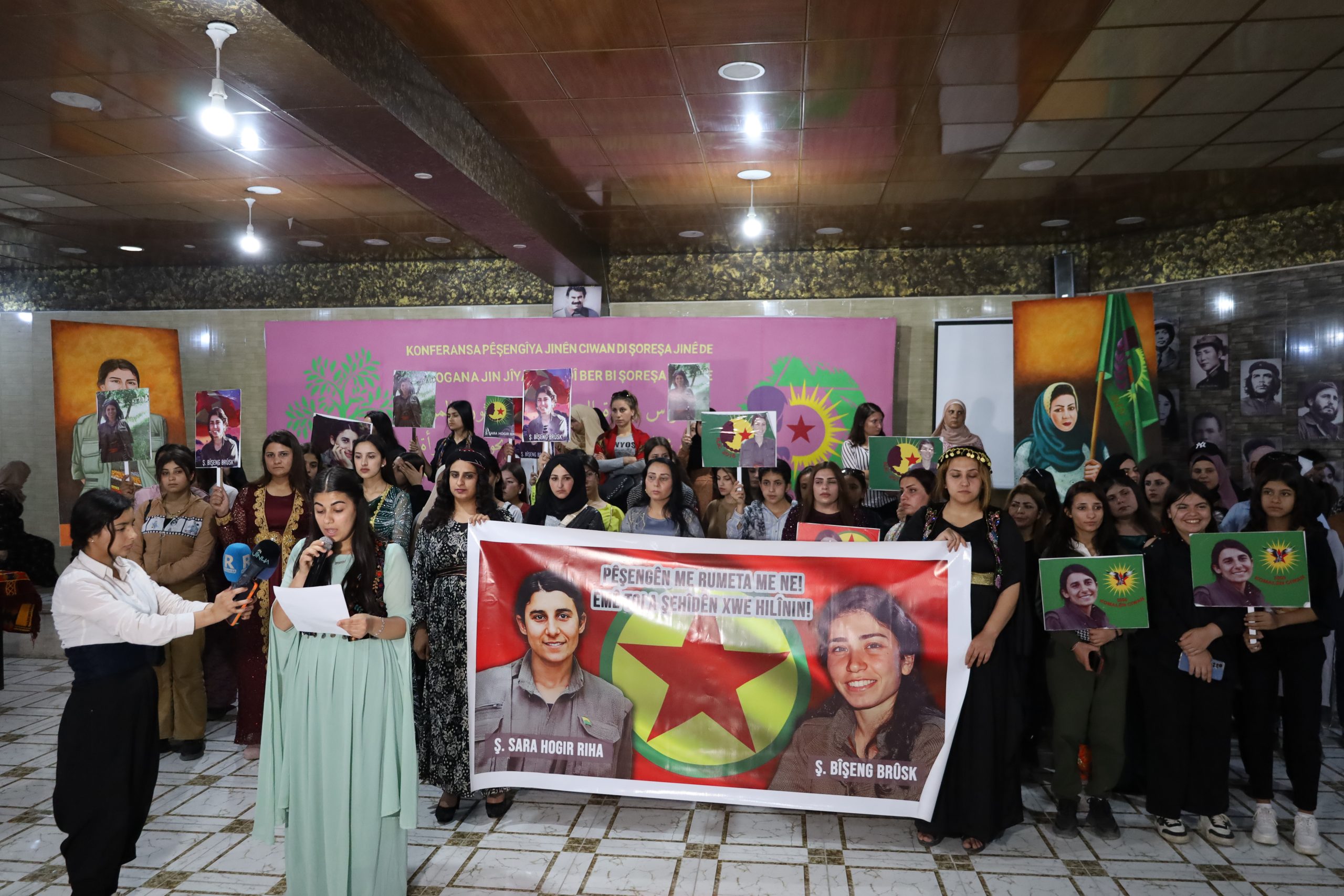 “Kadın Devriminde Genç Kadınların İlerlemesi” konferansı “Jin Jiyan Azadî” sloganıyla Qamişlo’da düzenlendi. Konferansta genç kadınların ulusal demokratik sistemin kurulmasındaki rolü tartışıldı. Dünyanın birçok yerinden genç kadınlar konferansa selamlarını iletti. Konferansa Mısır’dan, Kenya’dan, Avrupa’dan, Şengal’den ve Güney’den selam ve görüşlerini ilettiler. Filmler ve seminerler sunuldu. Konferansın sonunda komün ve konseylerin çalışmalarının güçlendirilmesine yönelik birçok karar alındı. Daha sonra Genç Kadınlar Birliği’nin 5. Kongresi’nde hayata geçirilen birçok öneri vardı. Kenya Gençliğinden selamlama mesajı gönderildi. Kenyalı gençler daha önce de “Önder APO’ya özgürlük, Kürt Sorununa çözüm” hamlesi katıldıklarını açıklamış ve faaliyetlerinde Şehit Sara ve Şehit Bişeng’in ianılarını gündeme getirmişlerdi. Bu temelde Genç Kadınlar onlara yanıt verdi ve Kenya’ya devrimci selamlarını gönderdiler.