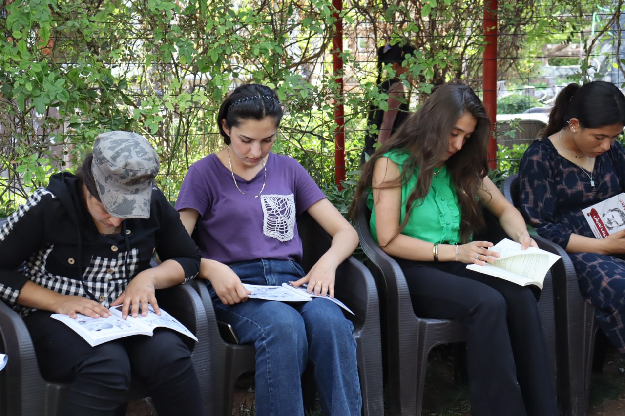 Önder APO’nun kitaplarının okunmasına sürekli devam edildi. Kobanê ve Hesekê’de genç kadınlar “Özgürlük kazanacak – Çizgilerle Abdullah Öcalan’ın Hayatı” adlı karikatürü okudu.