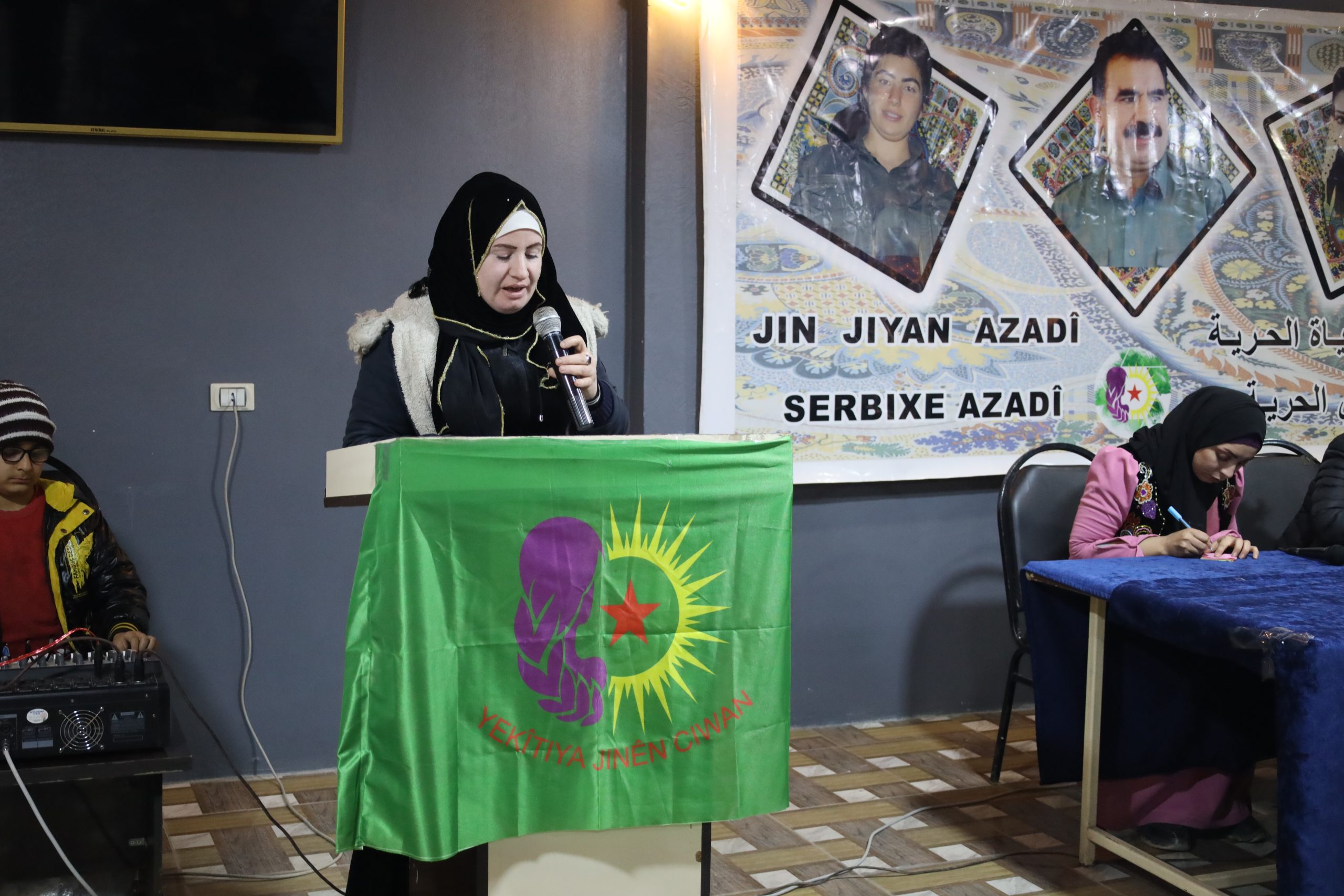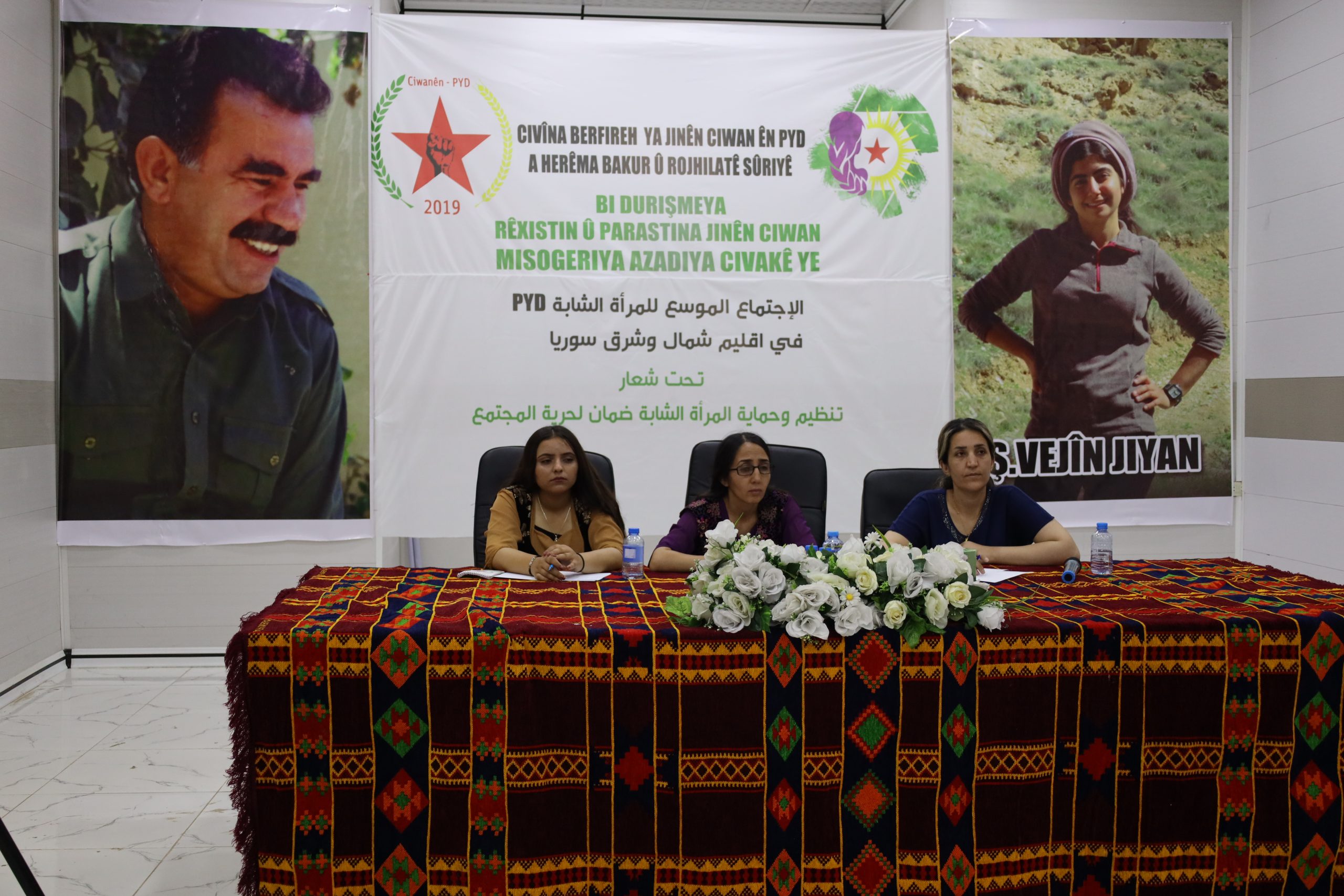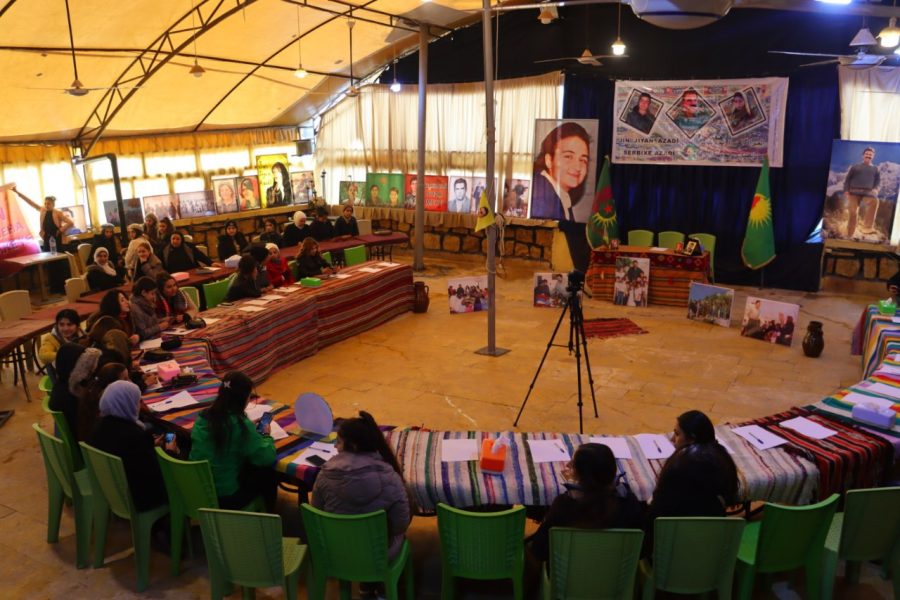 PY’liD Genç Kadınlar, Haseke’de Kuzey ve Doğu Suriye konulu kapsamlı bir toplantı düzenledi. “Genç Kadınların örgütlenmesi ve korunması toplum özgürlüğünün teminatıdır” sloganı altında PYD Genç Kadınlar üyeleri bir araya gelerek 2 yıldır çalışmalarını değerlendirdi. Ayrıca tüm tartışmaların odağında Önder APO’nun fiziki özgürlük mücadelesi vardı. Önder APO kampanyasına PYD’li genç kadınlar da aktif olarak katıldı. Pek çok seminer verildi, eğitimler verildi. Tecrit ve Önder APO’nun görüşleri üzerine çalıştaylar yapıldı.