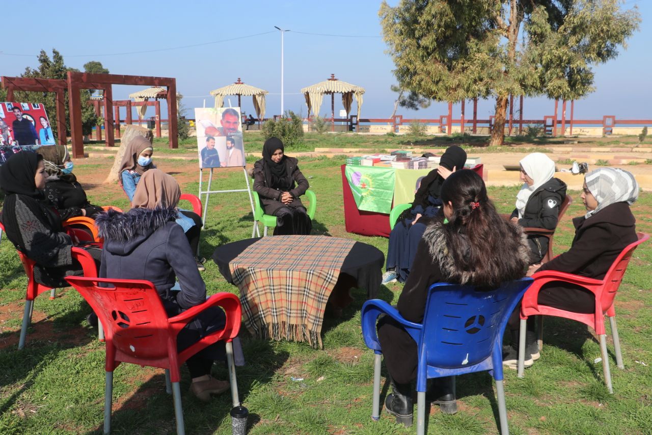 “Jin Jiyan Azadi Serbixe Azadi” kampanyası çerçevesinde Önder APO’nun fiziki özgürlüğüne yönelik birçok planlamalar çıkarıldı. Özellikle Önder APO’nun fikrini nasıl hayata geçirebileceğimiz konusunda birçok öneri ve yeni fikirler ortaya çıktı. Genç kadınlar her alanda okuma grupları oluşturarak, kominal bir şekilde Önder APO’nun kitaplarını okudular.