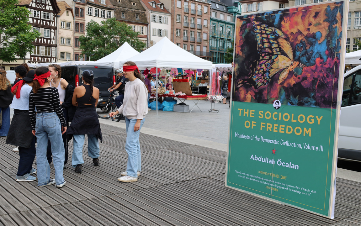 Önder APO’nun 25 yılı aşkın bir süredir İmralı soykırım sisteminde tutulmasını dünden bu yana protesto eden genç kadınlar, “Önder APO’ya Özgürlük Kürt Sorununa Çözüm” hamlesi kapsamında Strasbourg Place de Clebert meydanında bir araya geldi.