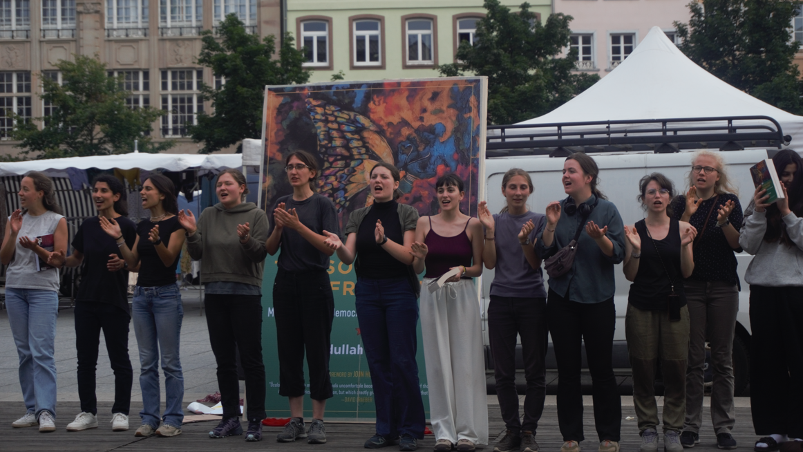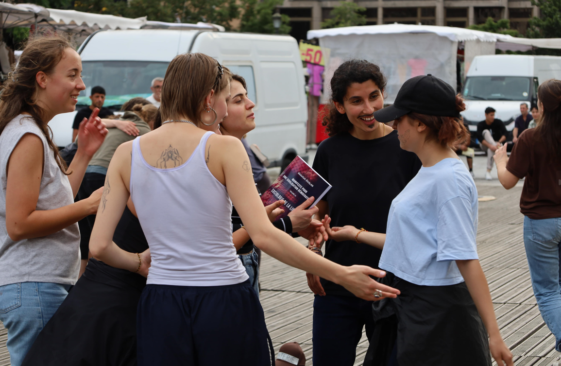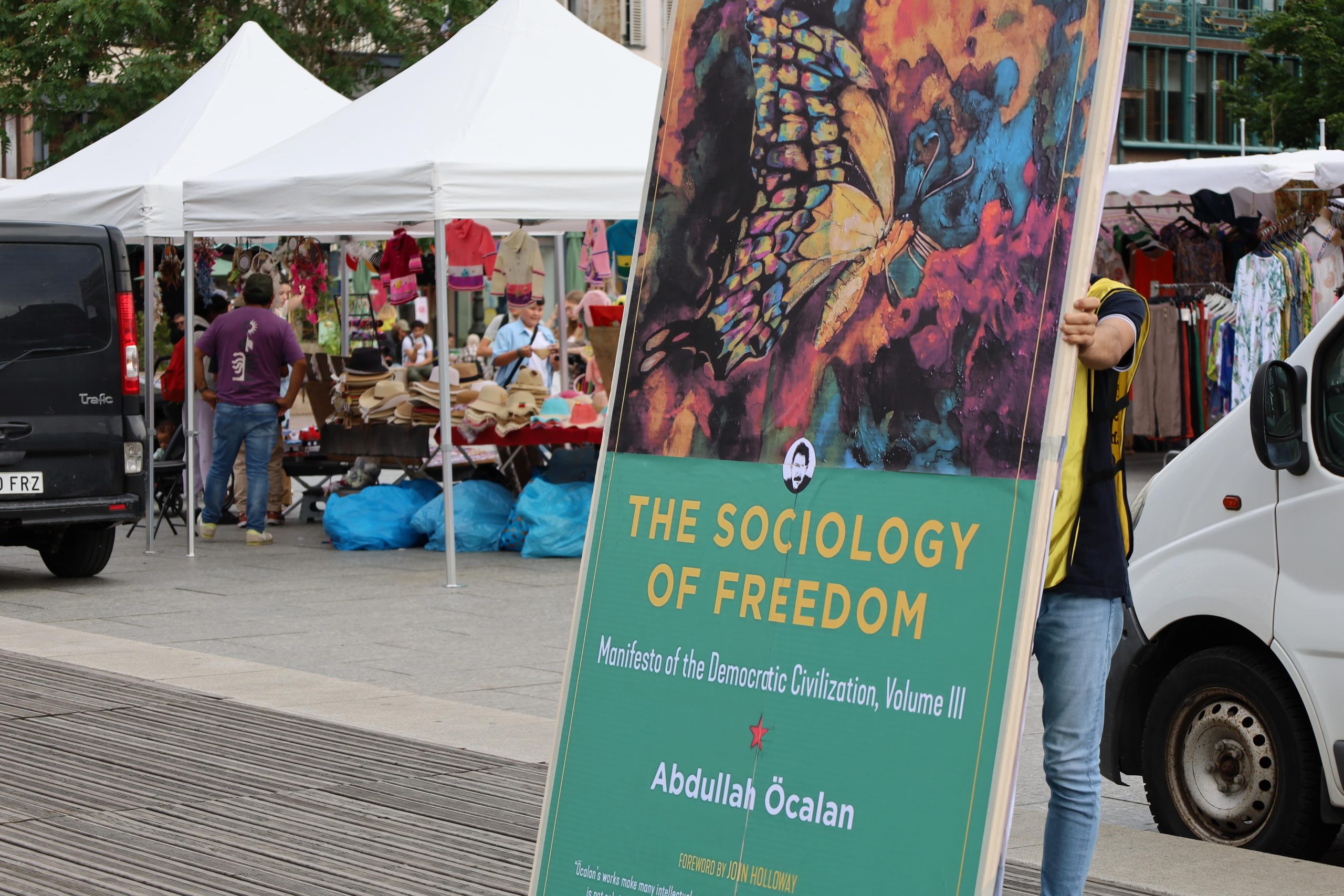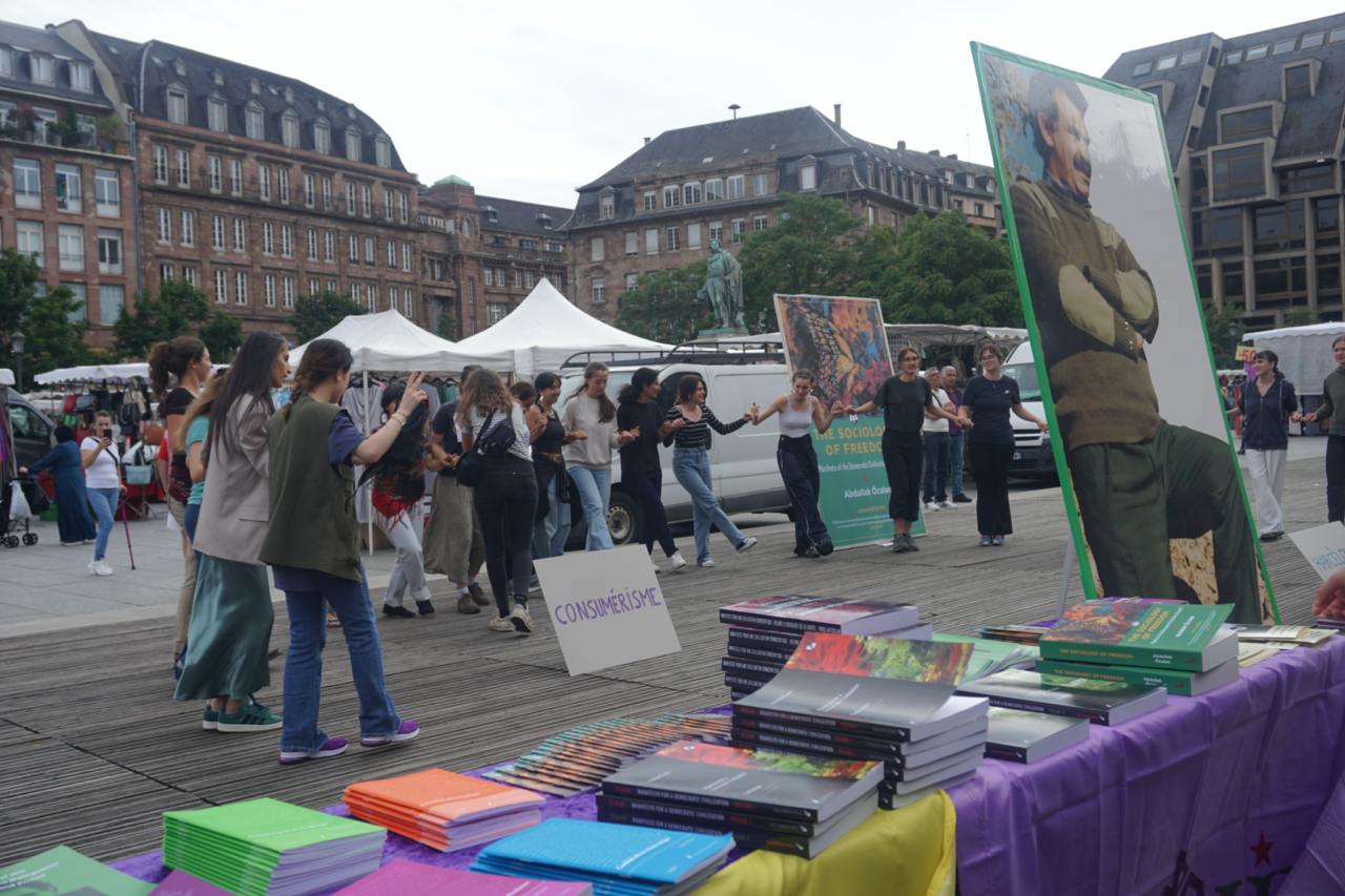 Önder APO’nun fiziki özgürlüğü için tiyatro gösteri yapan genç kadınlar, ayrıca Önder APO’nun kitaplarının bulunduğu ve fiziki özgürlüğüne dair broşürlerin yer aldığı stant kurdu. Stantta TekoJIN’ın tanıtımı için özel hazırlanan broşürler de yer aldı.