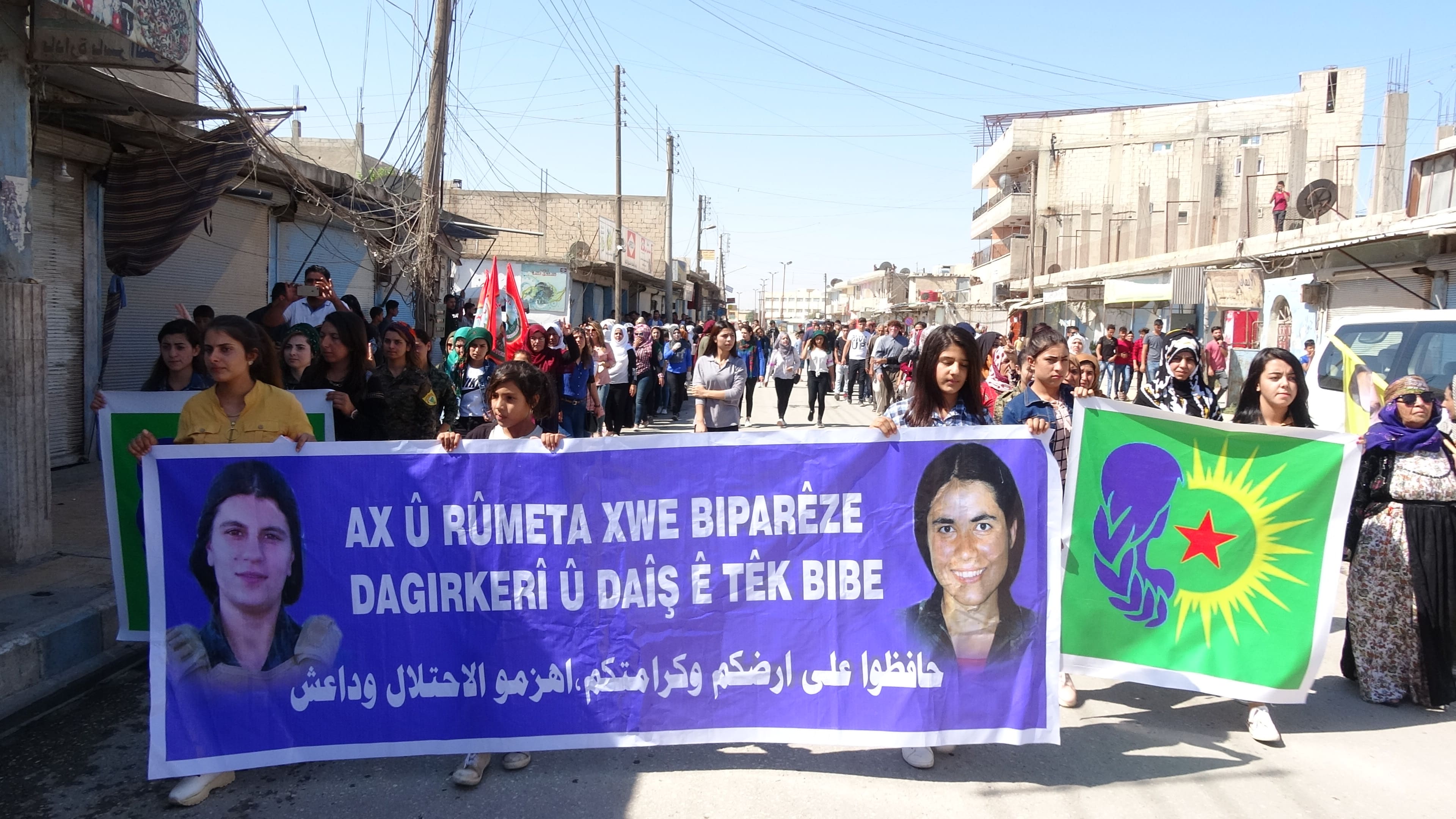 Girê Spîli genç kadınlar, Kongreya Star üyeleri ve sivil kurumların kadın çalışanlarının hazır bulunduğu yürüyüş Qefes kavşağında başladı.