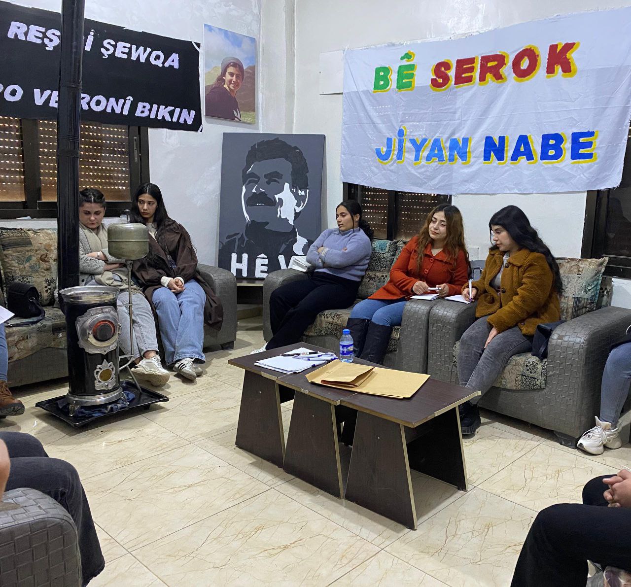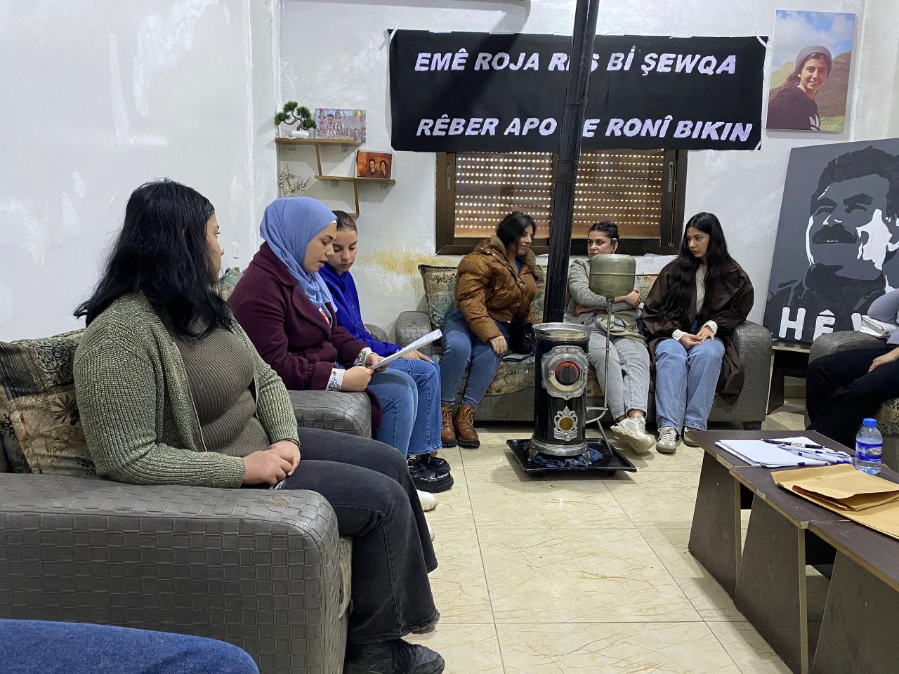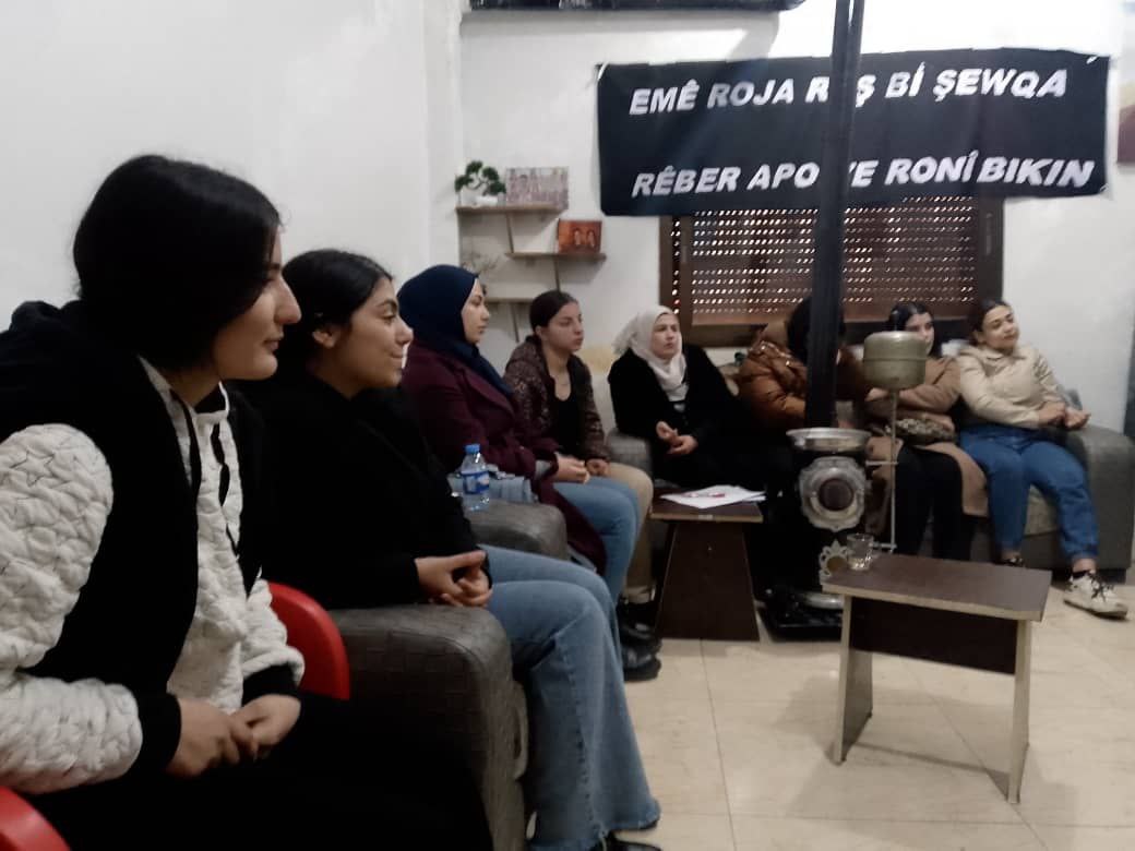 “Kara Günü Önder APO’nun Işığıyla Aydınlatacağız” sloganıyla düzenlenen kampa 15 Kürt ve Arap genç kadın katıldı. Kamp başlamadan önce genç kadınlar pankartlarını hazırladılar. Kampın ilk gününde Önder APO’nun uluslararası komploya ilişkin açıklamaları okundu, okumanın ardından tüm genç kadınlar Önder APO’ya mektup yazdı.