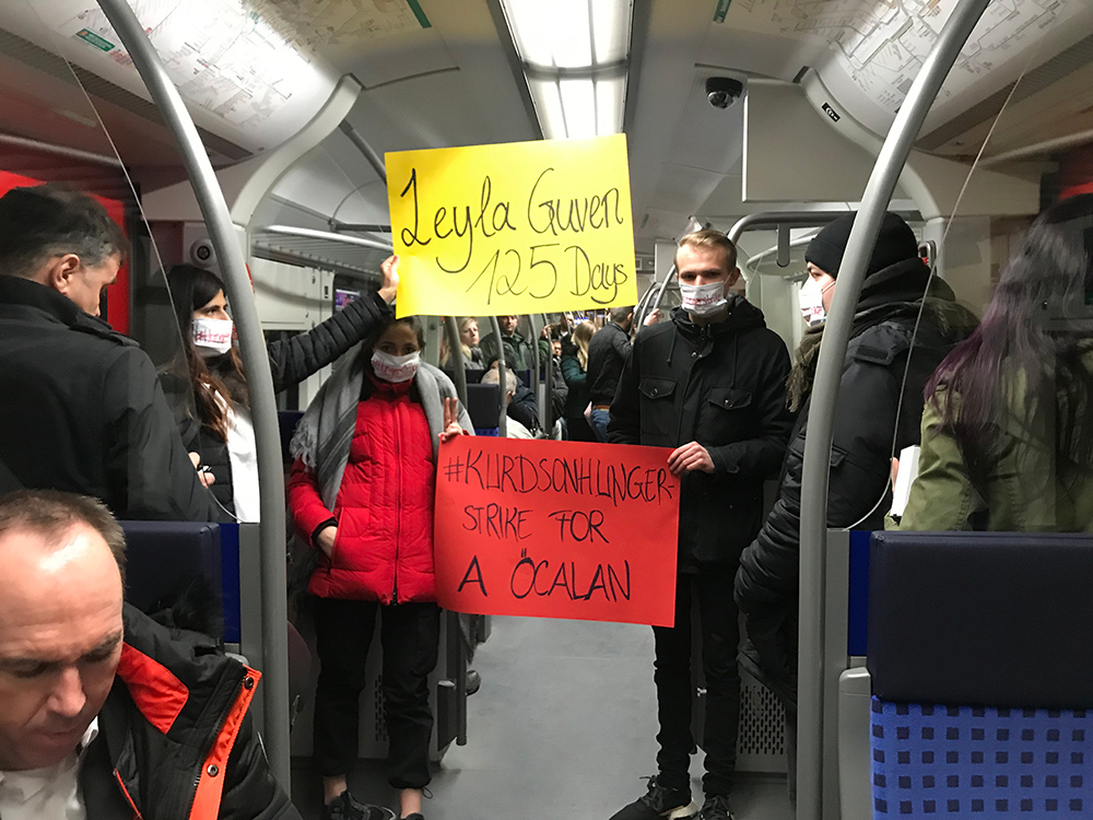 PARİS/FRANKFURT -Fransa’nın başkenti Paris’te JXK aktivisti genç kadınlar „durma eylemi“ gerçekleştirdi. Paris’in Gare de Lyon tren istasyonunda bir araya gelen genç kadınlar, gözlerini ve ağızlarını kapatarak Leyla Güven öncülüğünde devam eden süresiz-dönüşümsüz açlık grevlerine ve Avrupa’nın sessizliğine dikkat çekti. İstasyondan geçenler eyleme yoğun ilgi gösterdi. Genç kadınlar eylemleri boyunca Fransızca “Hepimiz Leyla’yız”, “Öcalan’a özgürlük” ve Jin, Jiyan Azadî sloganları attılar.