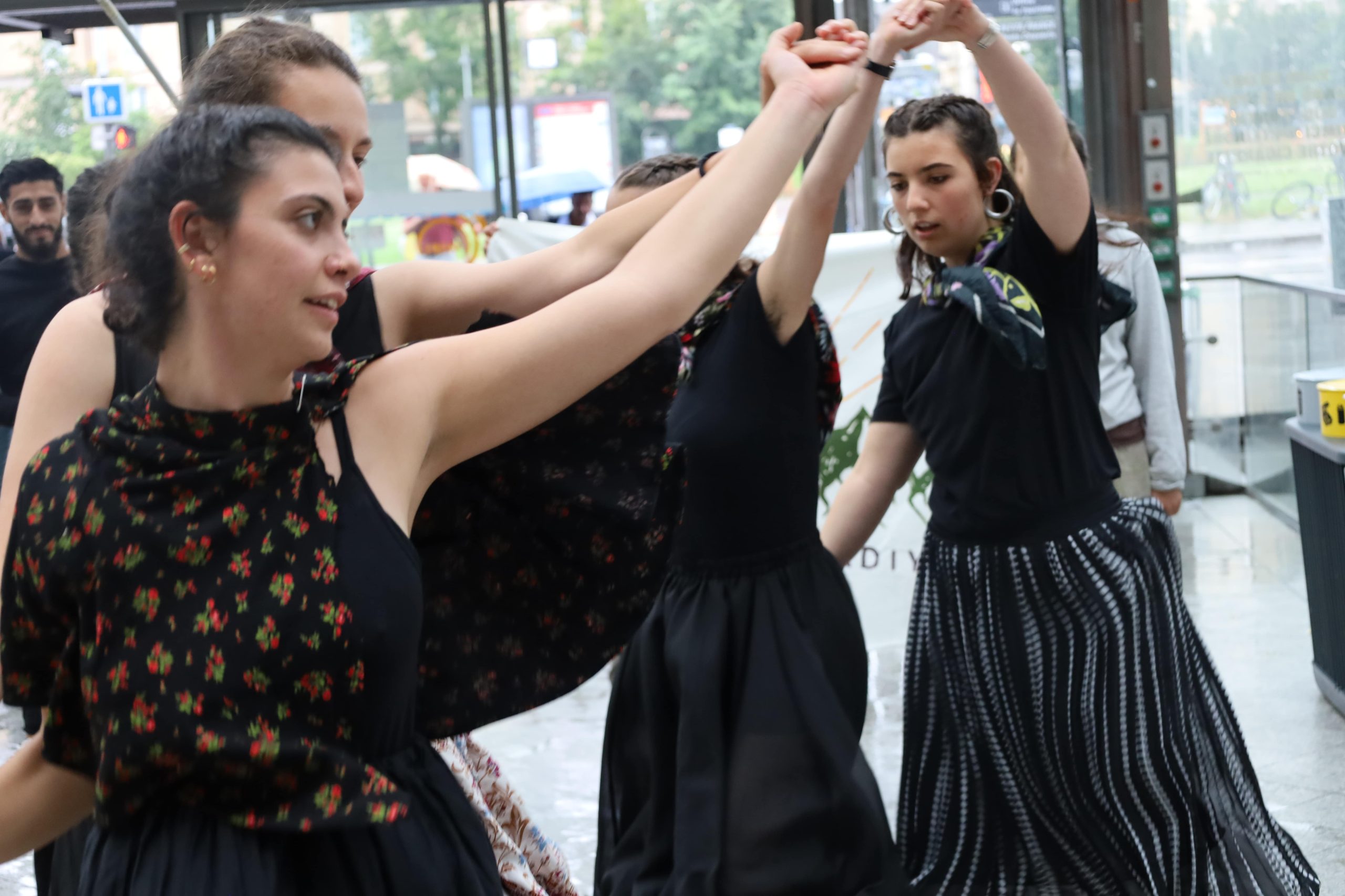 İki koldan yöresel halaylar ile içeri giren genç kadınlar bütün yerel halkın dikkatini çekti. Son olarak bir araya gelen ve özgürlük halayına duran genç kadınlar “Bijî Serok APO” sloganlarıyla eylemlerini sonlandı.