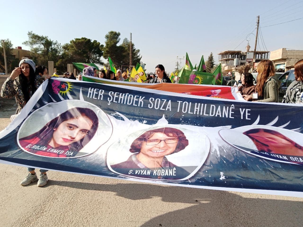 9 Ocak Paris Katliamı ve Kobanê'de gerçekleşen katliama karşı Amûdê'den, Qamişlo'ya yürüyen genç kadınlar, Qamişlo'ya ulaştı. Qamişlo'ya ulaşan genç kadınlar; "Şehitlerimizin intikamını alacağız." dedi.