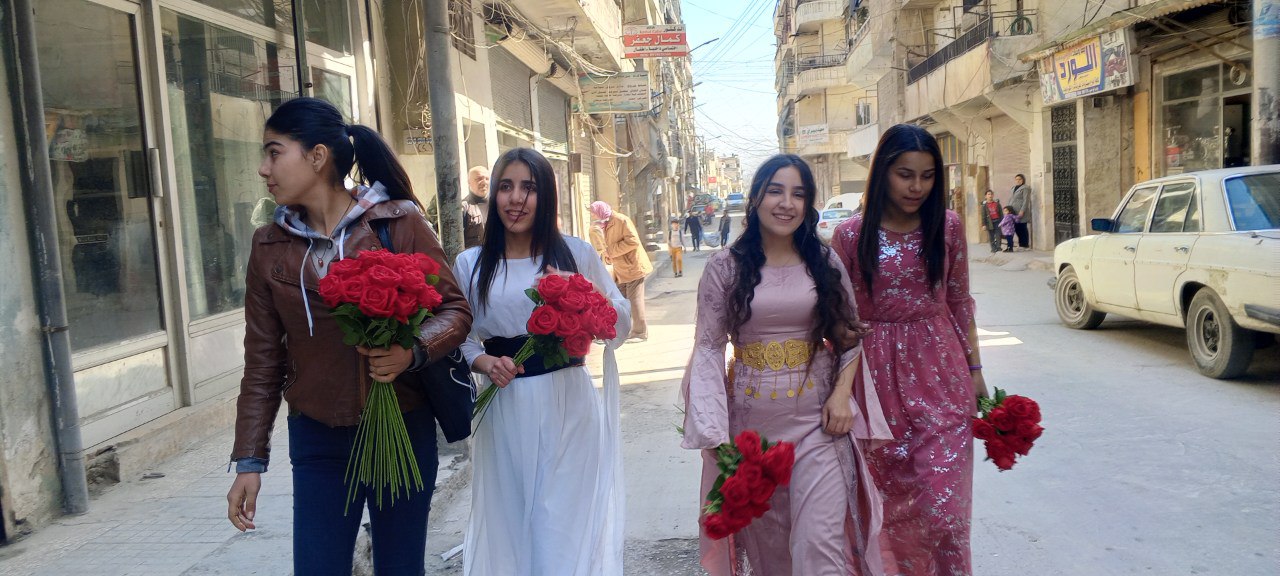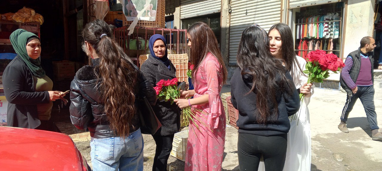 Geleneksel kıyafetlerle ve ellerindeki güllerle sokak sokak dolaşan genç kadınlar gördükleri kadınların 8 Mart Kadınlar Gününü kutlayarak gül verdi. Genç kadınlarlar sokaklardan geçen kadınlar tarafından mutlulukla karşılandı.
