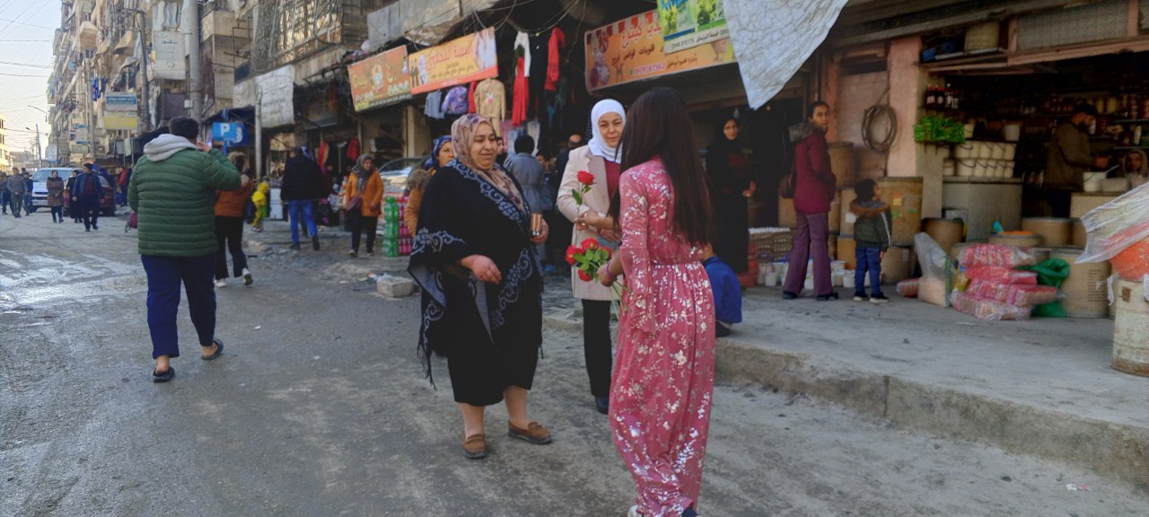 HALEP- Halebin Şexmaxsûd Mahallesinde Genç Kadınlar Birliği üyeleri tarafından 8 Mart Dünya Emekçi Kadınlar gününün yaklaşması vesilesiyle kadınlara güller dağıtıldı.